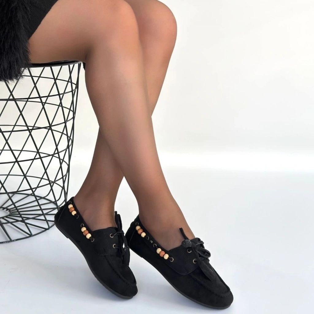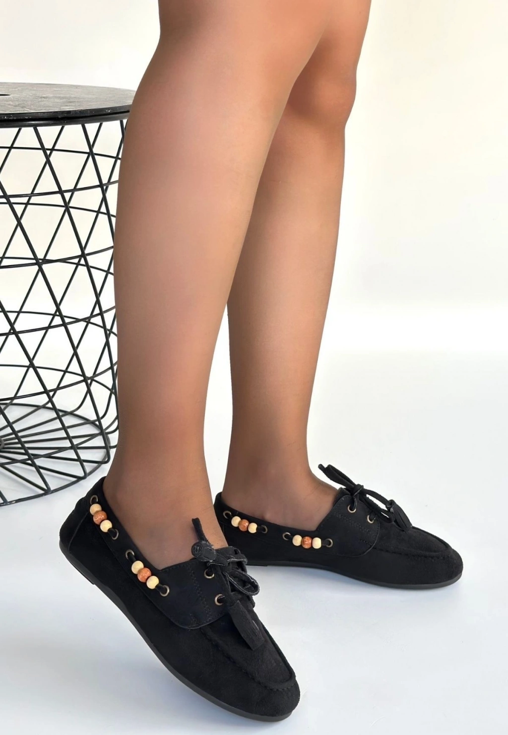 Zaty Siyah Süet Siyah Pullu Babet Ayakkabı