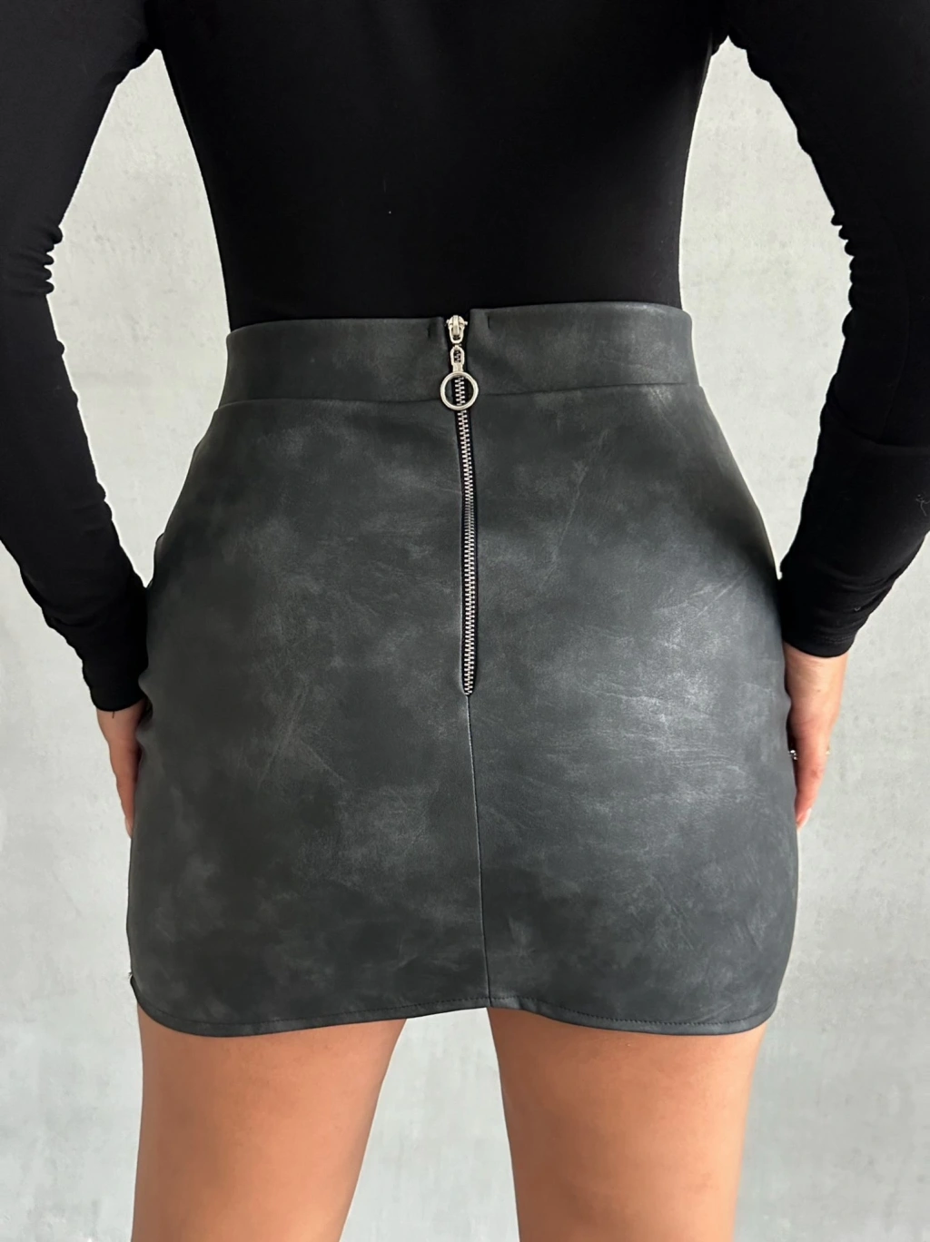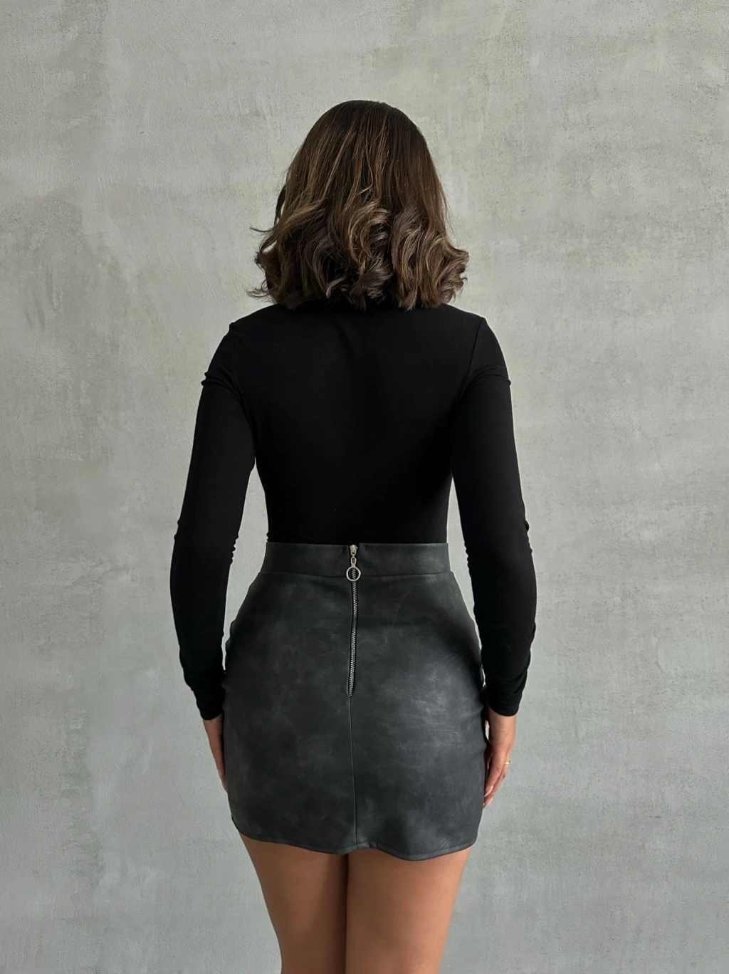 Cep detaylı oval kapaklı deri etek siyah h240048