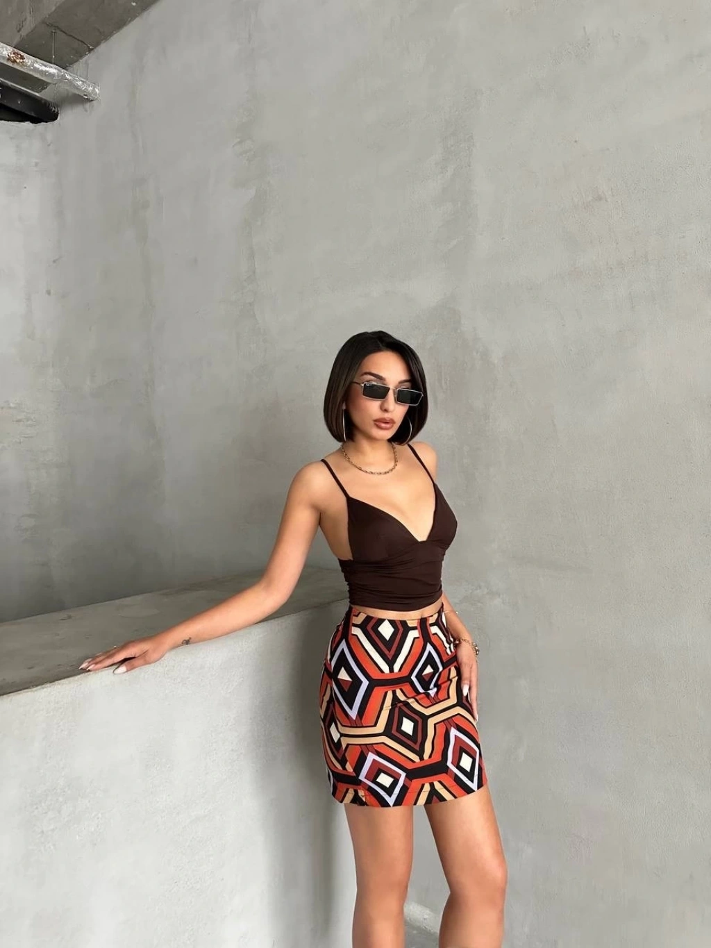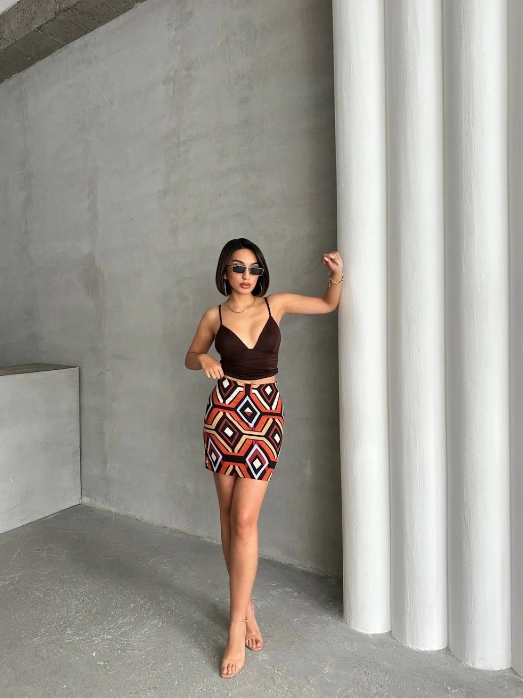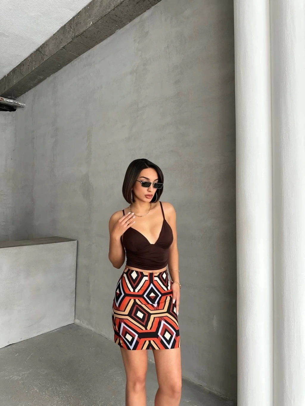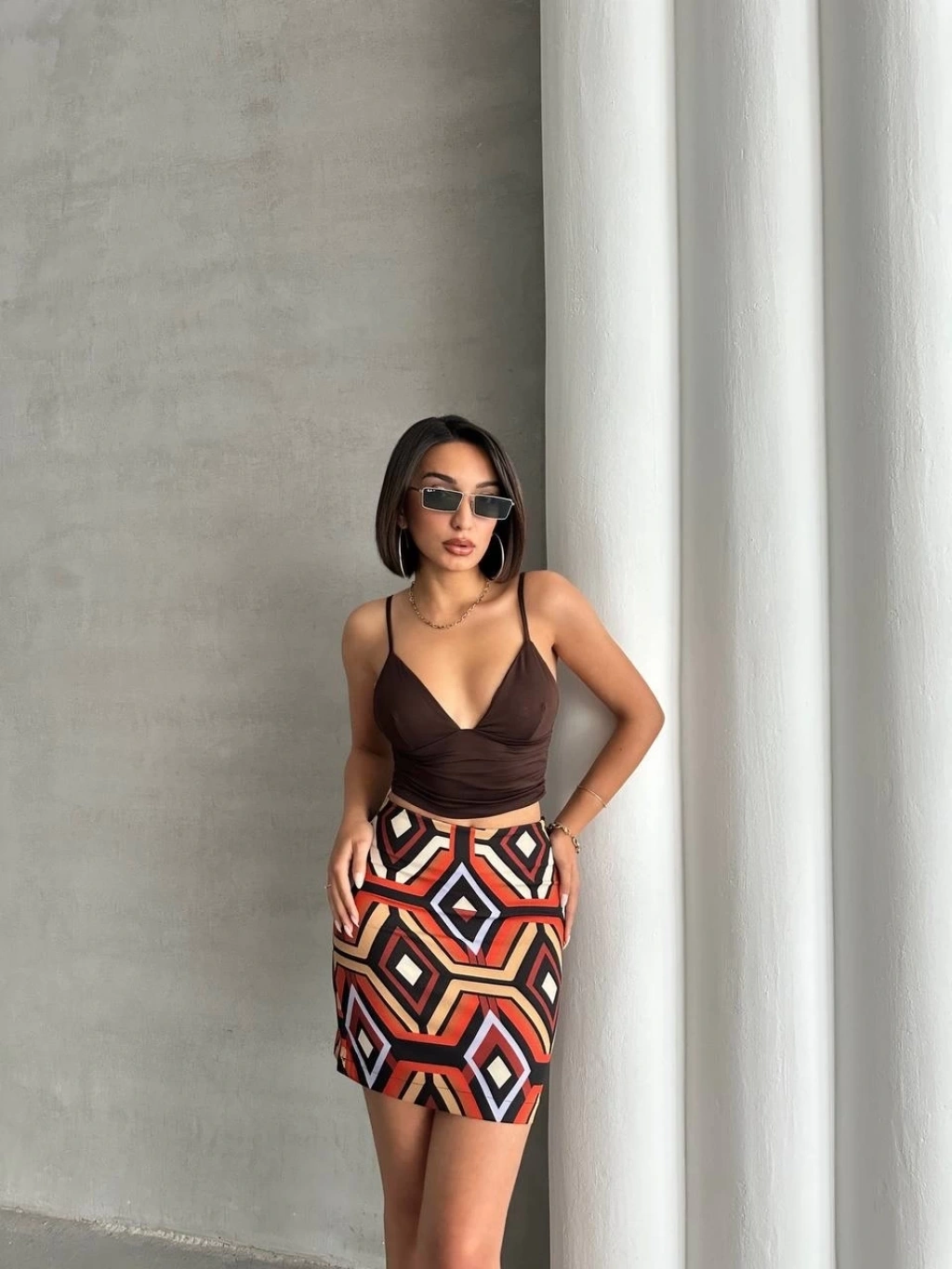 Cep detaylı oval kapaklı deri etek kahve h240048