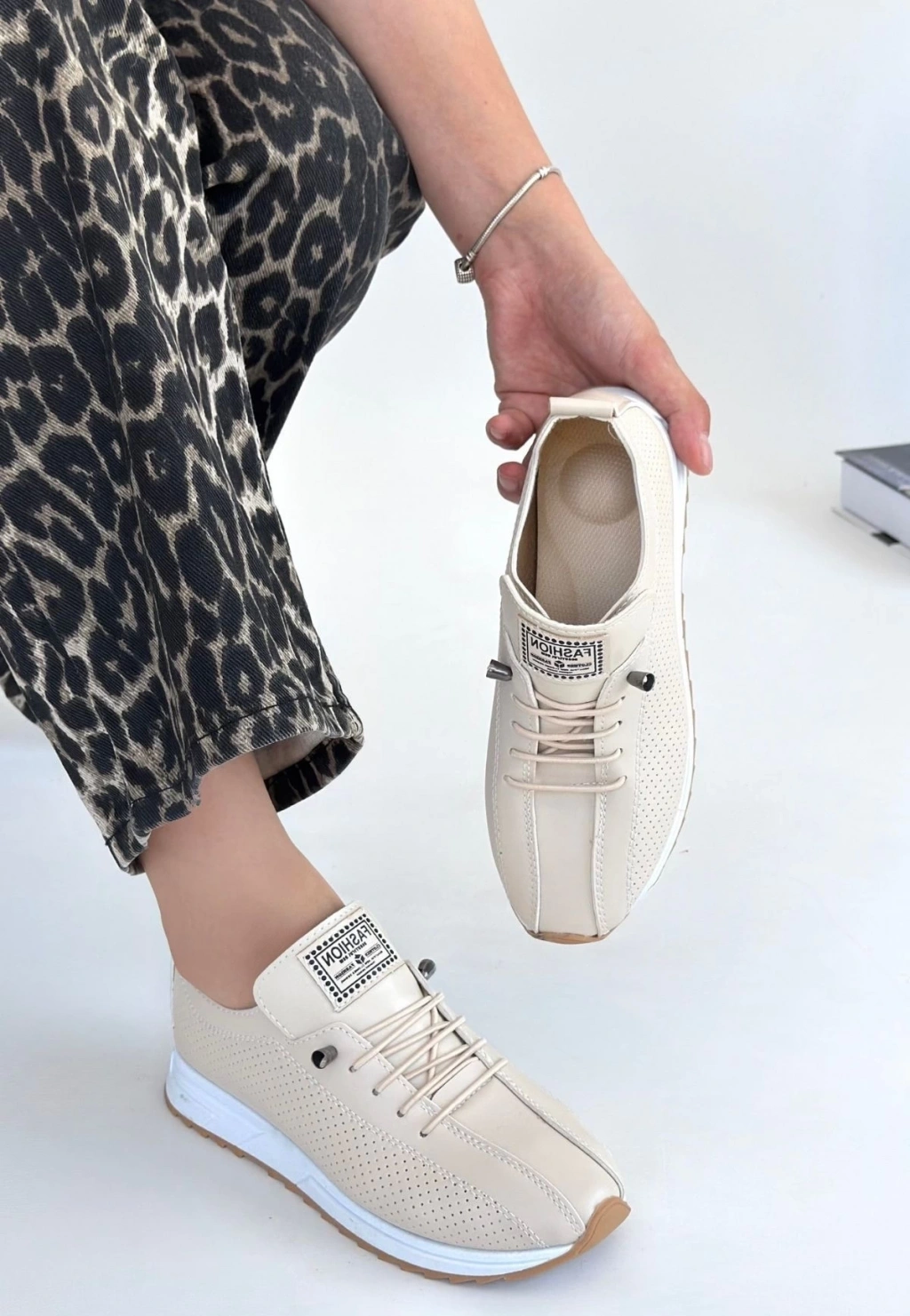 Tawen Beyaz Cilt Bağcıklı Spor Ayakkabı