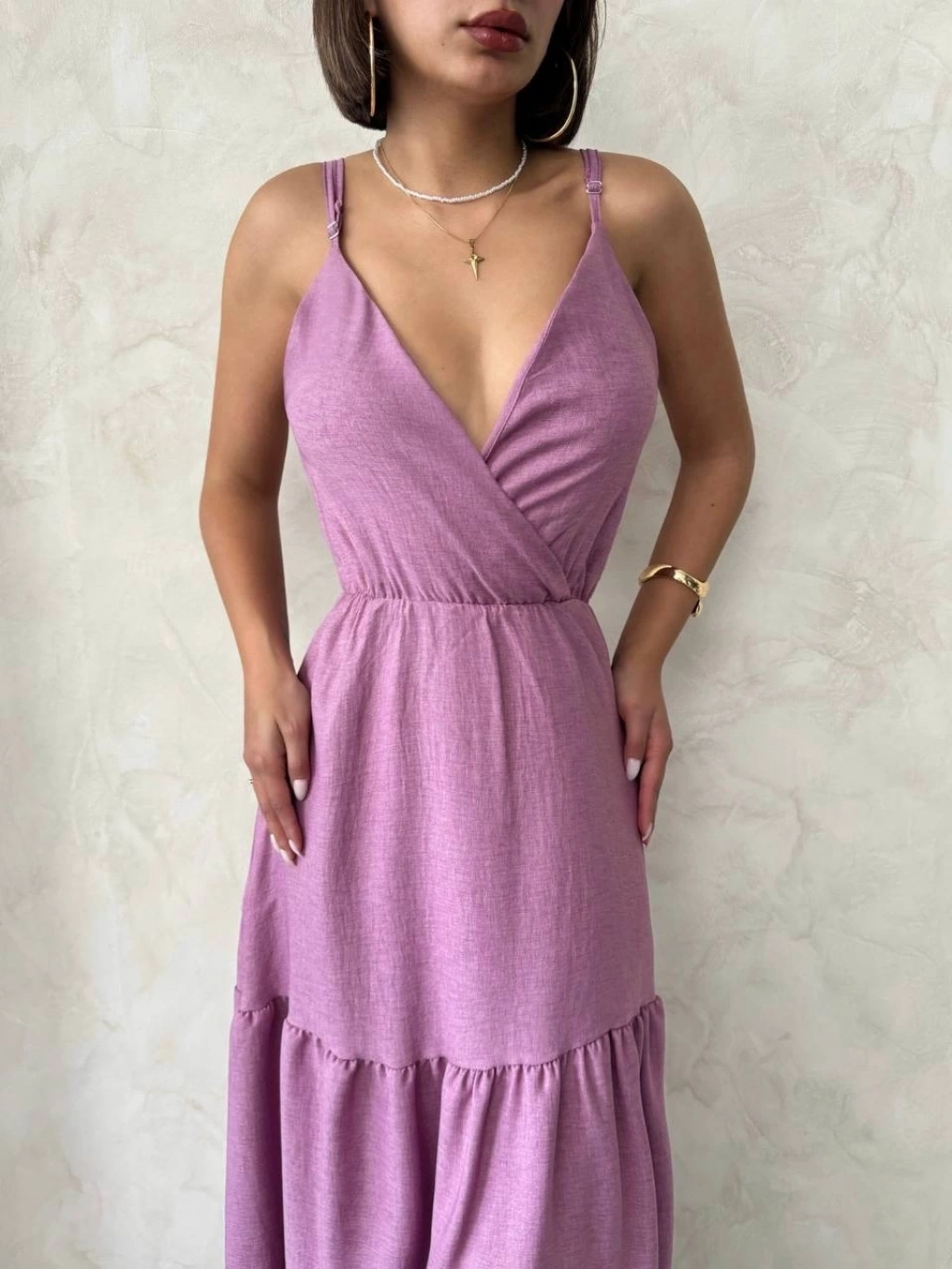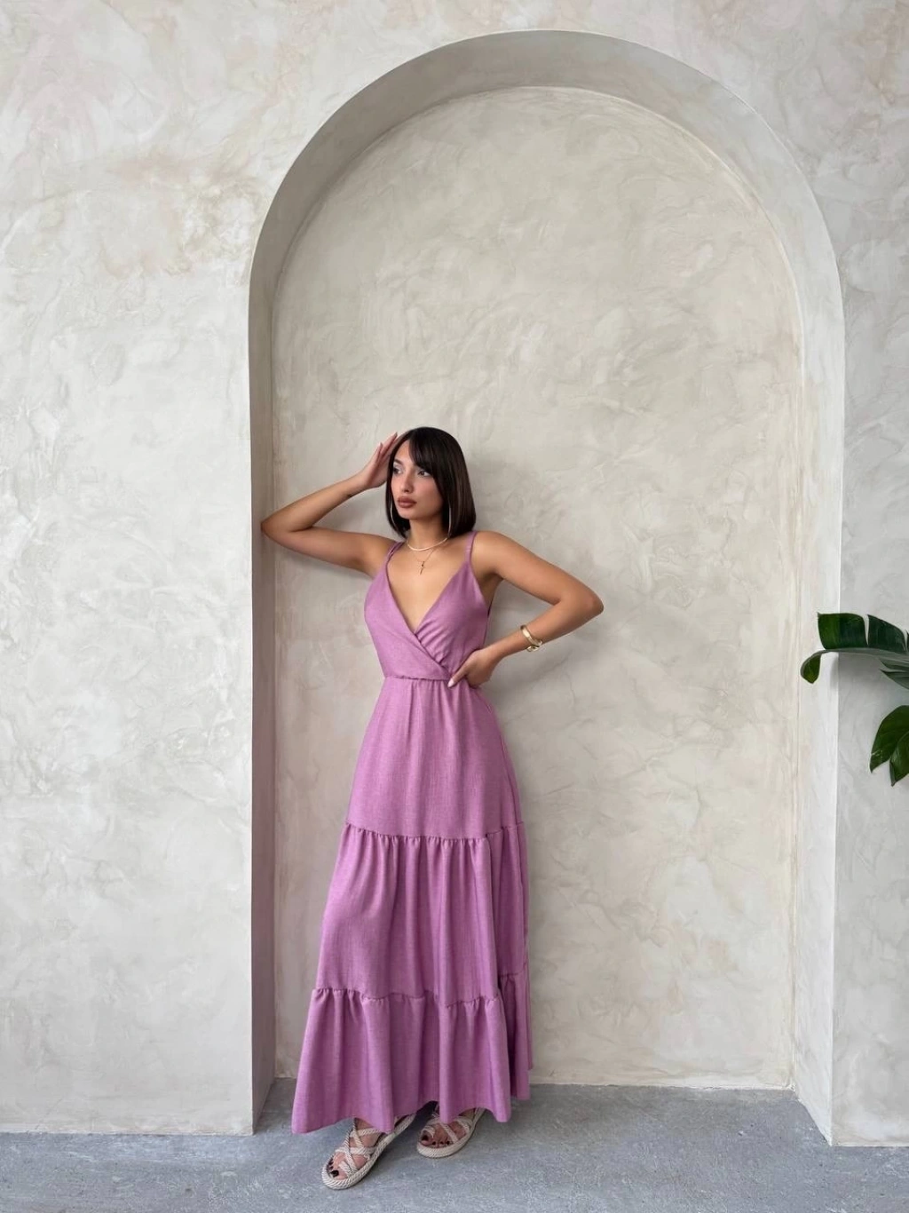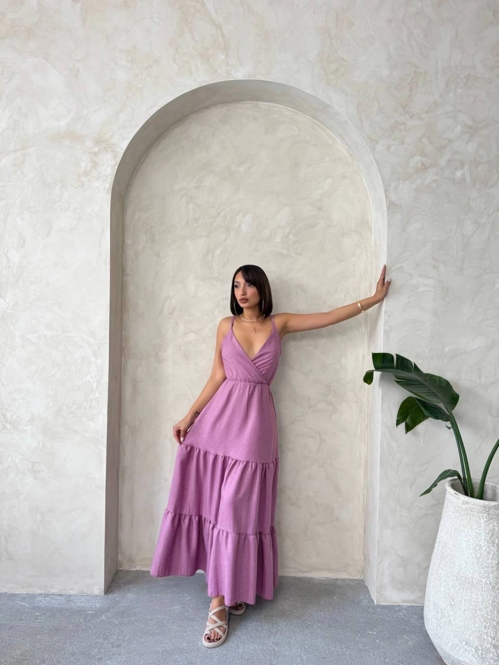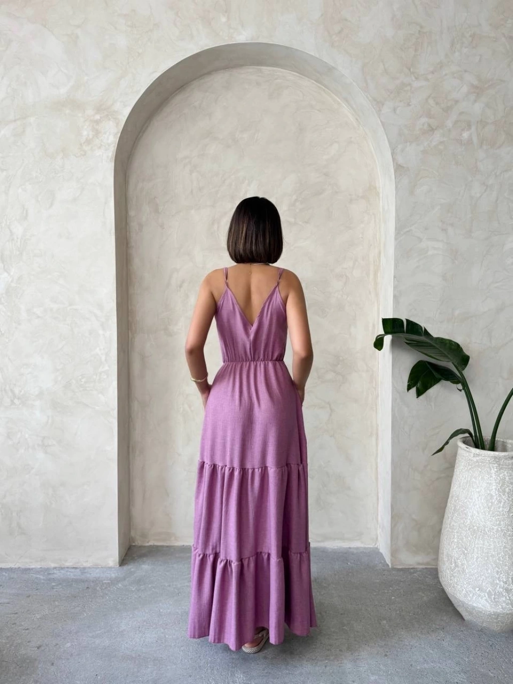 Askılı ch kumaş düğmeli elbise pudrabeyaz h265007