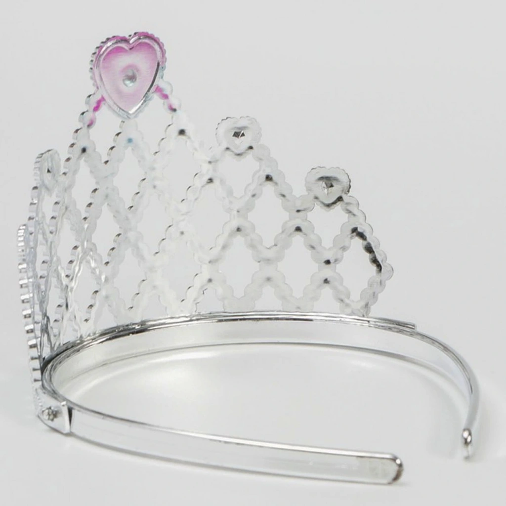 Fuşya Kalpli Gümüş Renk Kraliçe Tacı Prenses Tacı (5047)