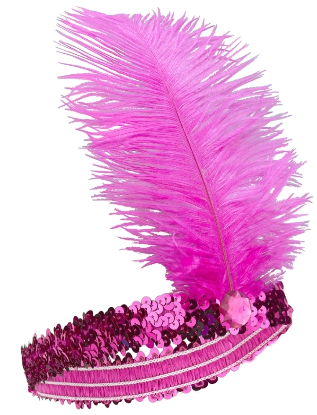 Fuşya Renk Tüylü Çarliston Saç Bandı (5047)