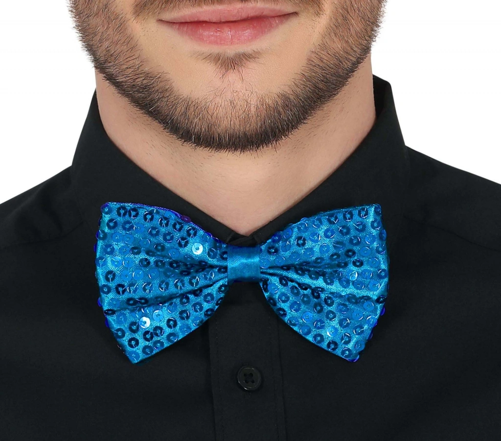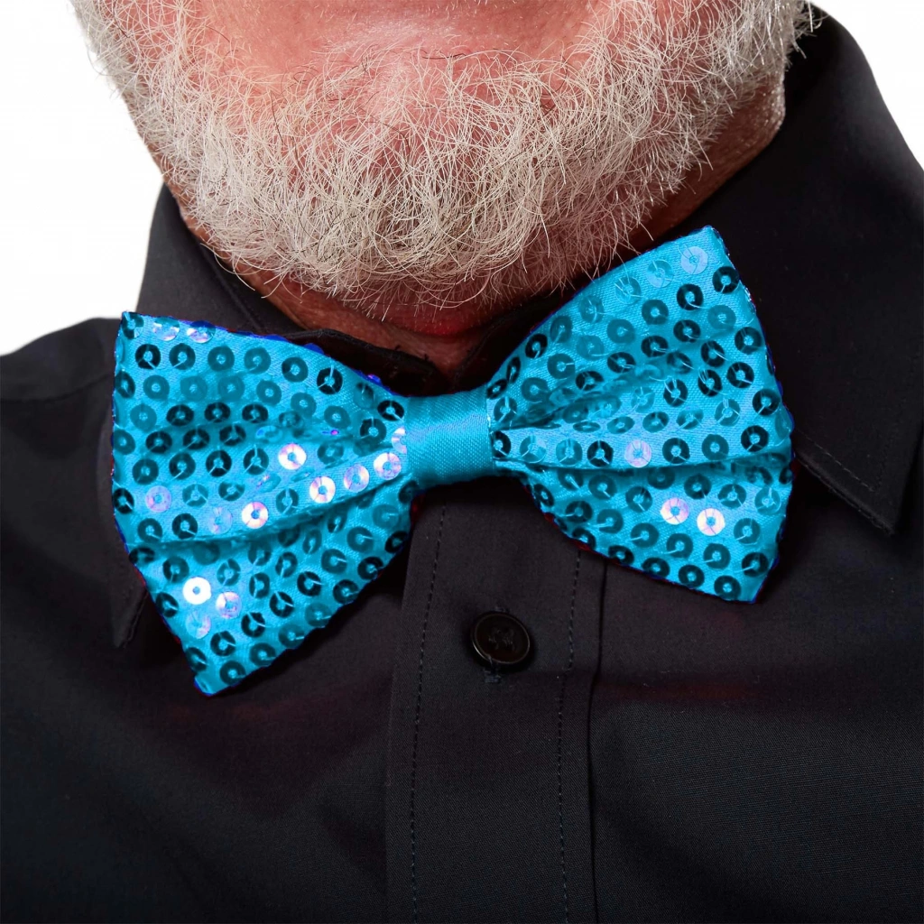 Gece Işıltısı Açık Mavi Turkuaz Payetli Pullu Papyon 7x2 cm