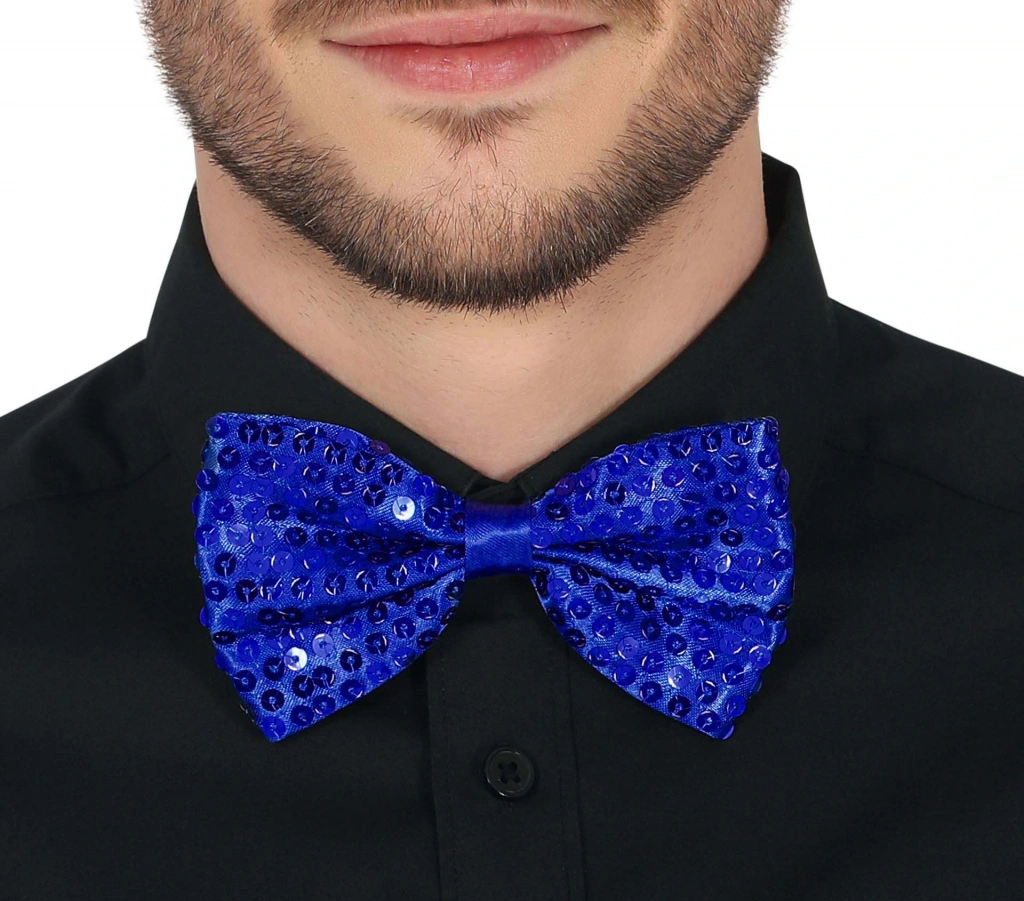 Gece Işıltısı Mavi Payetli Pullu Papyon 7x2 cm (5047)