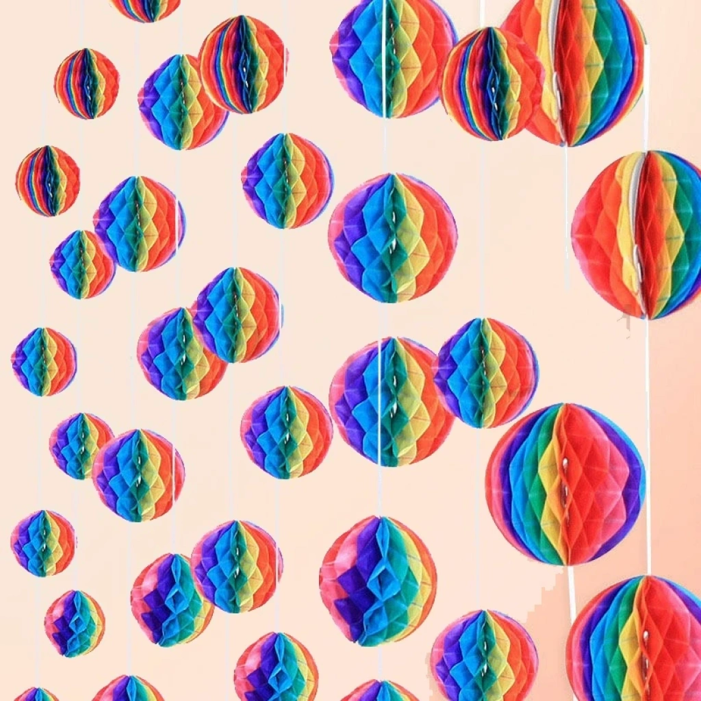 Gökkuşağı Renkli 30 cm Rengarenk Kağıt Süs Fener 1 Adet (5047)