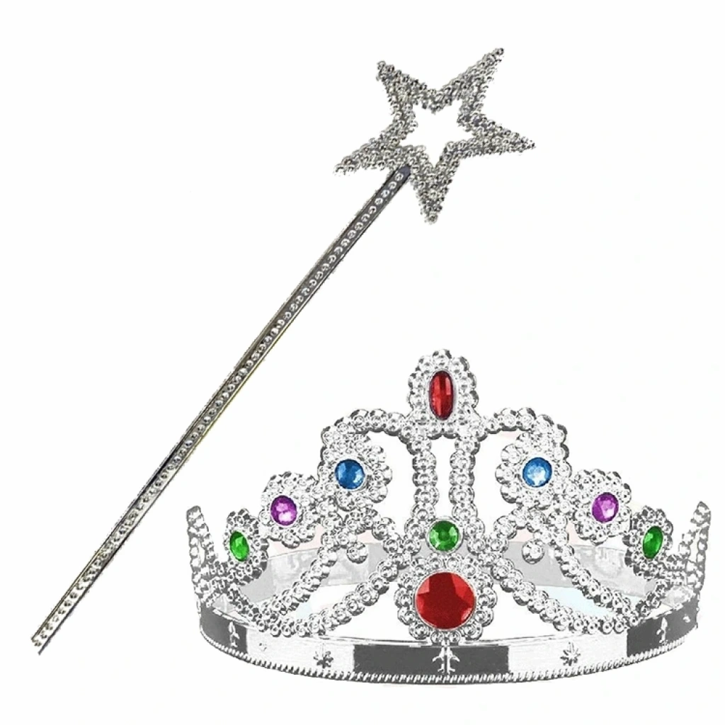 Gümüş Renk Metalize Prenses Tacı ve Metalize Prenses Yıldız Asası (5047)