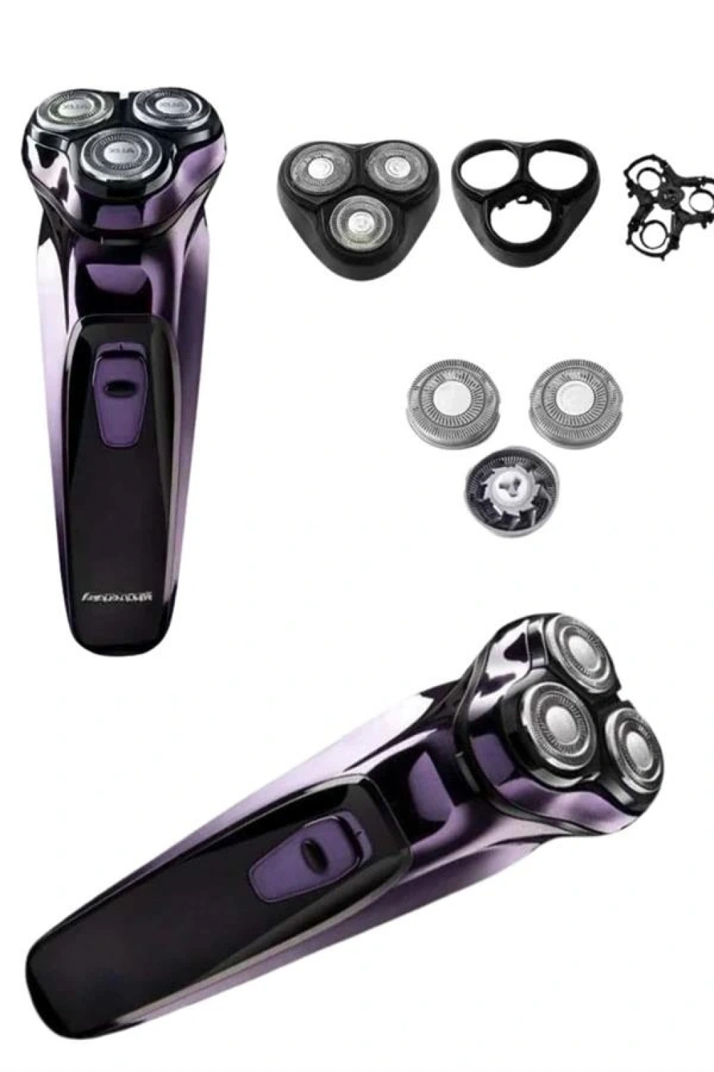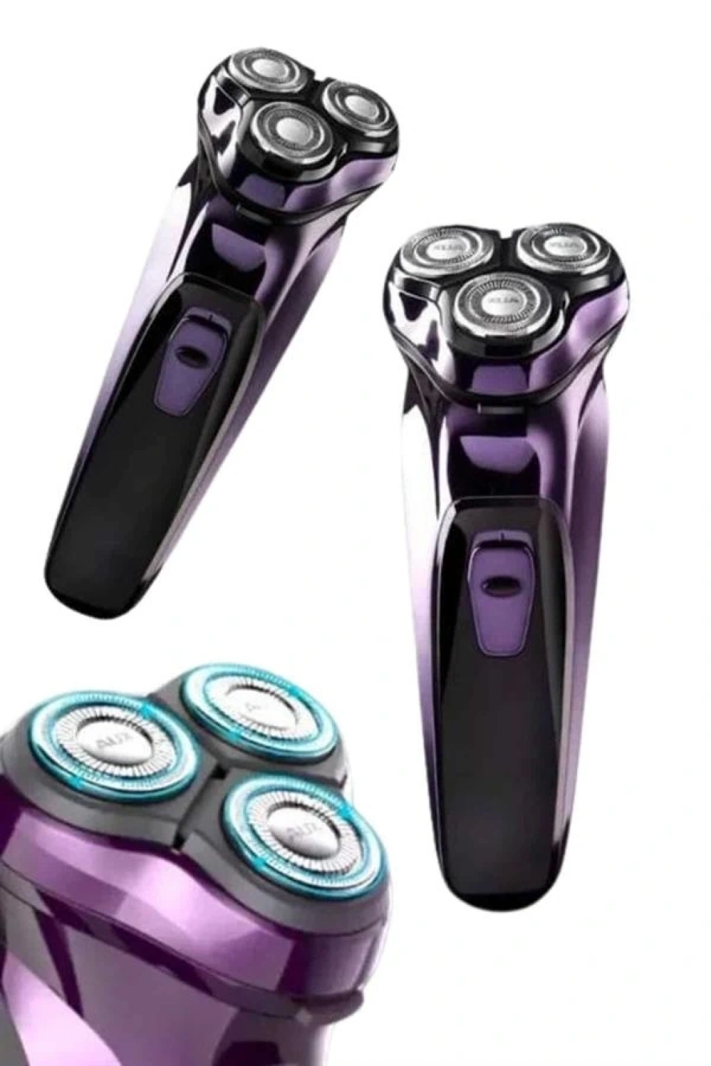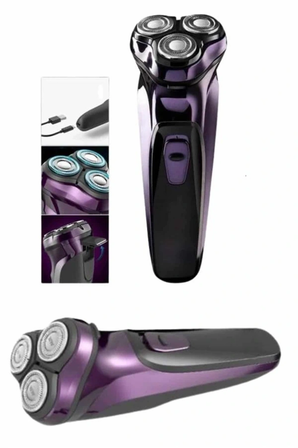 Şarjlı Gümüş Tıraş Makinesi – 3 Farklı Başlıklı, 120 Dakika Çalışma Süreli, Cilt Dostu Erkek Bakım Cihazı