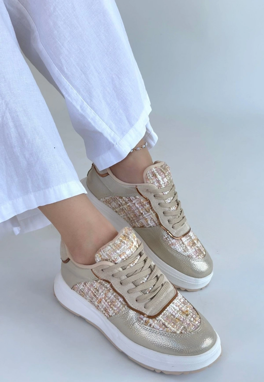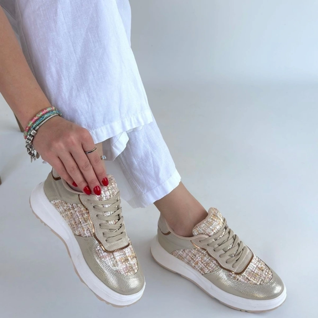 Hawer Bej Cilt Bağcıklı Spor Ayakkabı