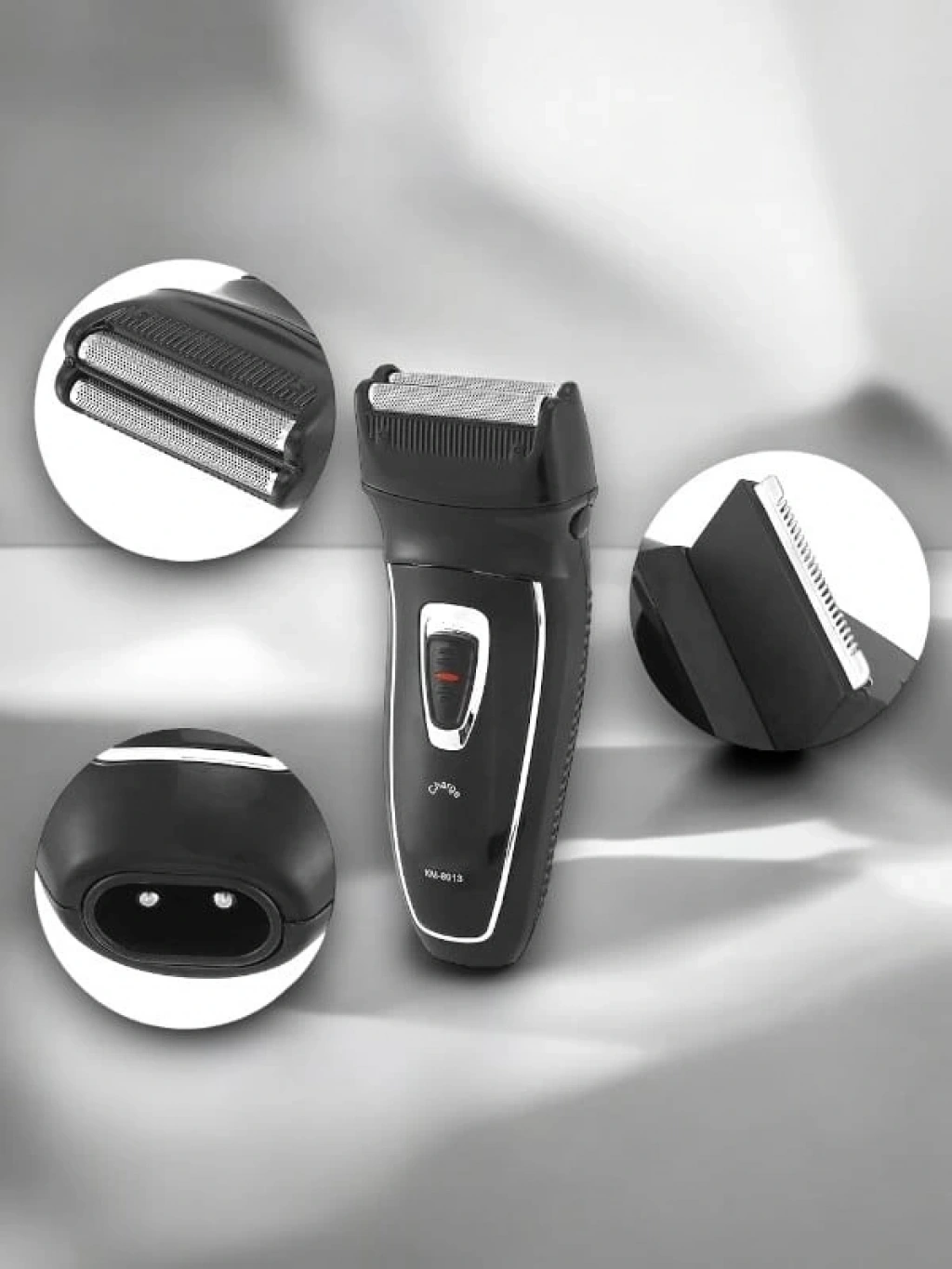 Gümüş Desenli Şarjlı Tıraş Makinesi – 120 Dakika Çalışma Süresi, 3 Başlıklı