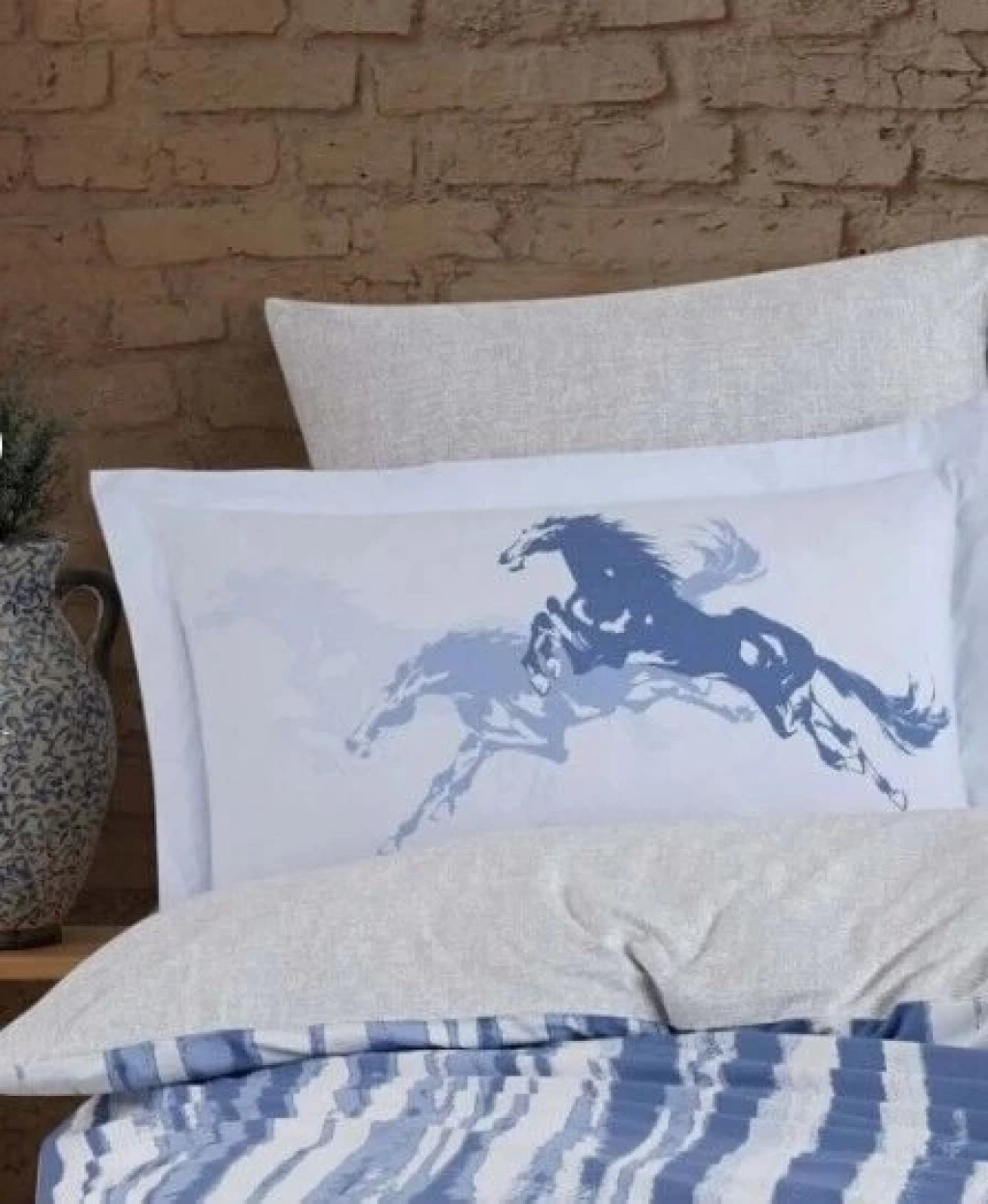 Taç Çift Kişilik Ranforce Nevresim Takımı Elyon Mavi