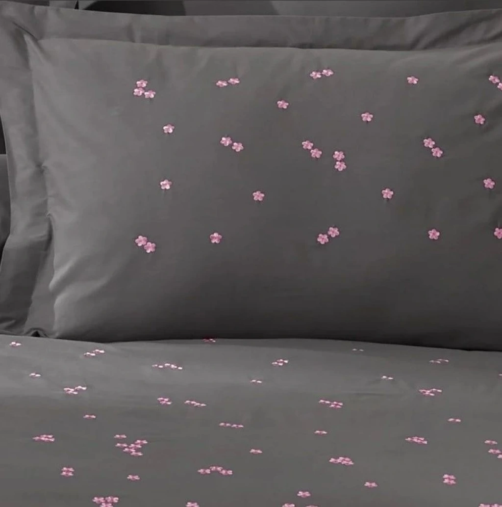 Hobby Çift Kişilik Poplin Premium Nakışlı Nevresim Spring Gri