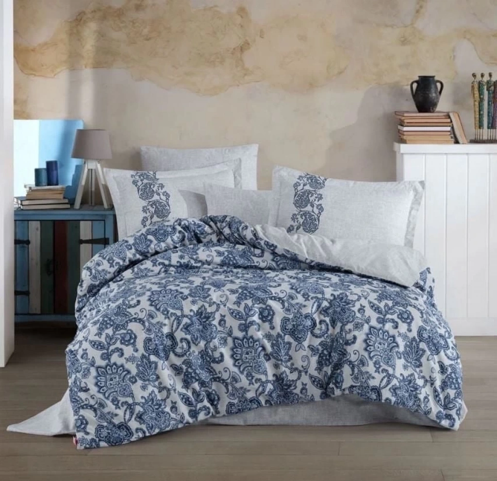 Taç Çift Kişilik Ranforce Nevresim Takımı Elyon Mavi