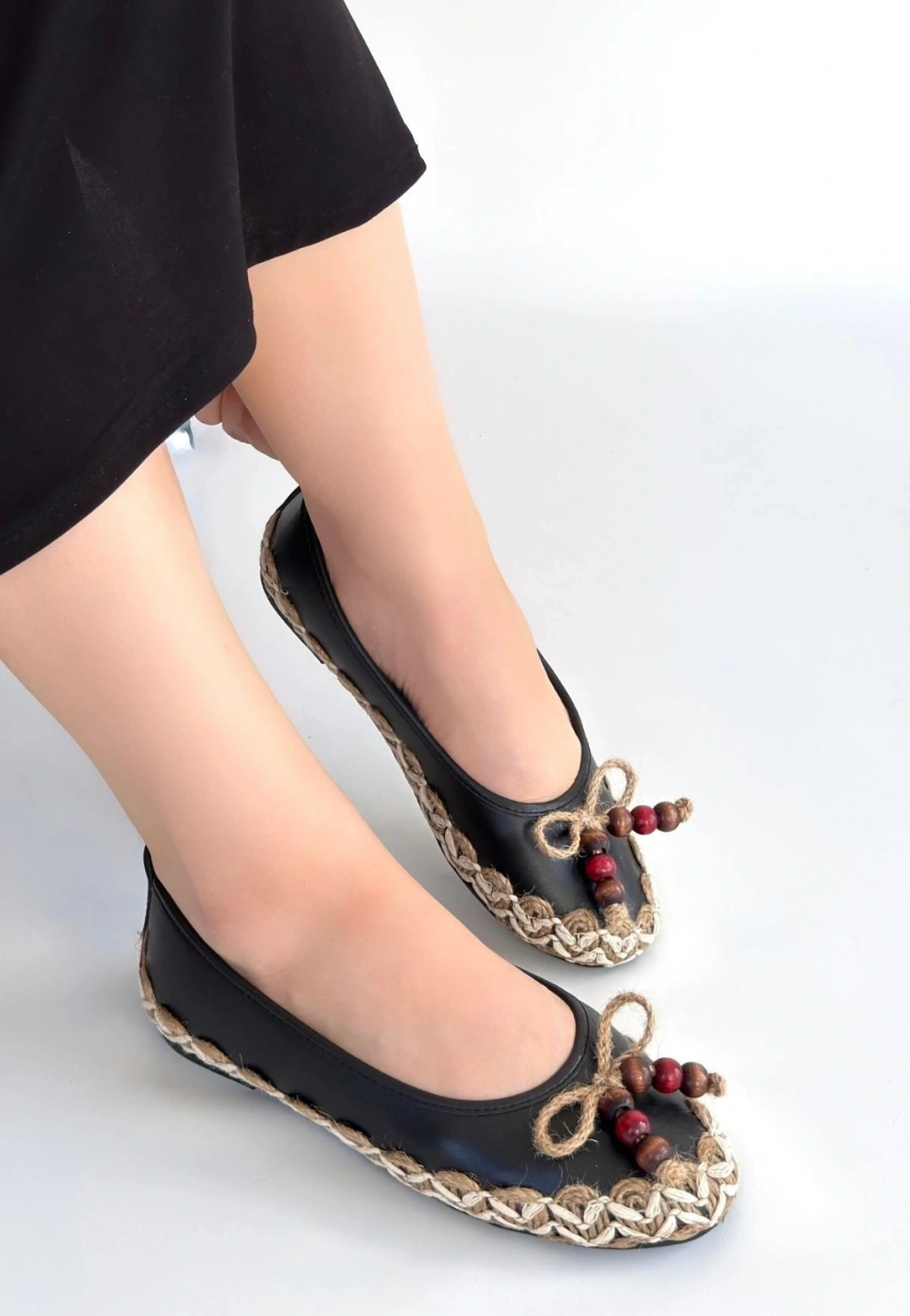 Ritta Siyah Cilt Kemerli Babet Ayakkabı