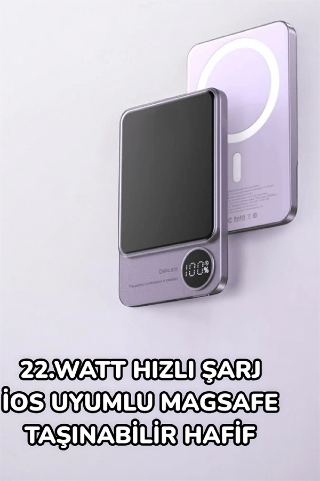 MagSafe Powerbank Kablosuz Şarjlı ve 22.5W Hızlı Şarj Destekli