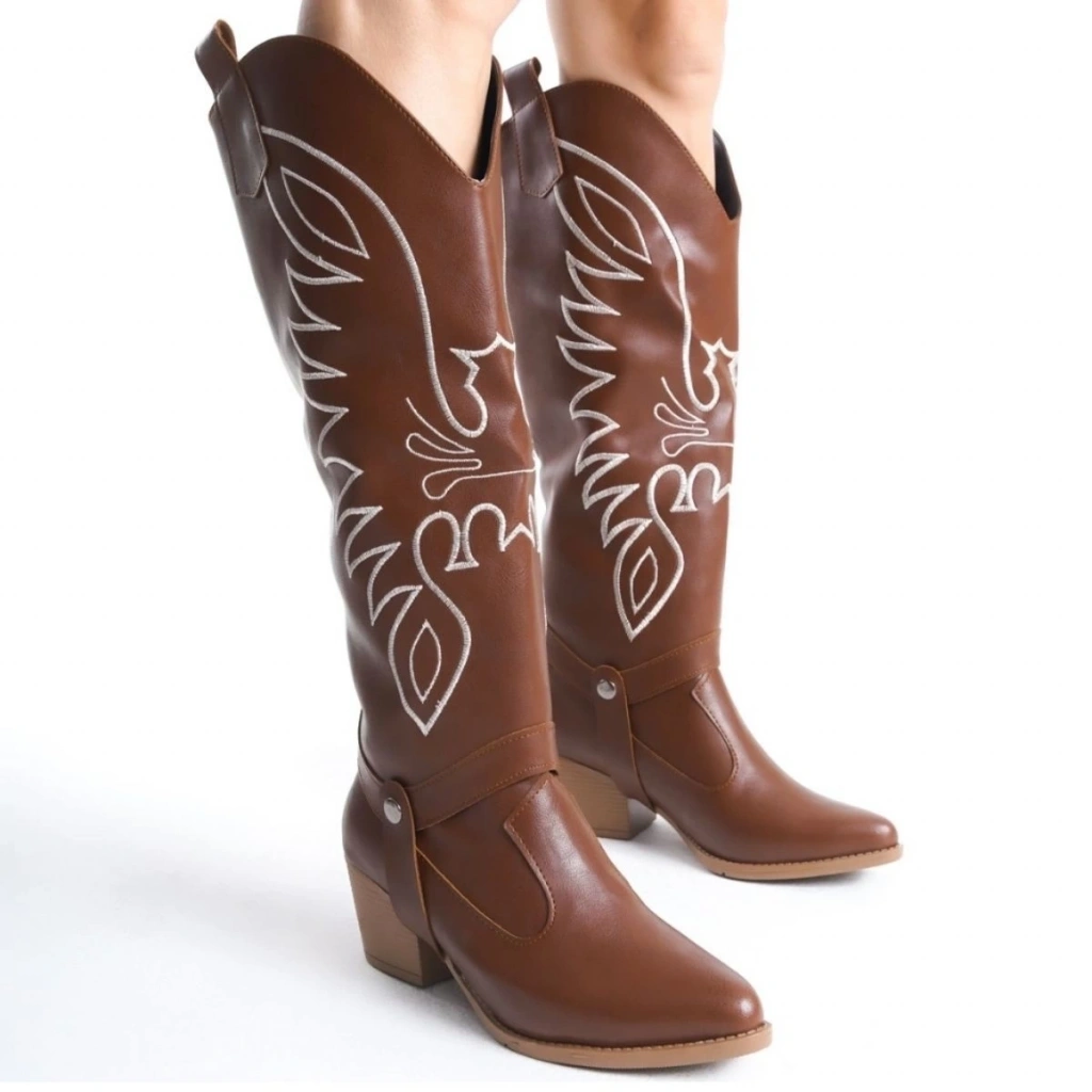 Jeoli Kahverengi Cilt Topuklu Çizme