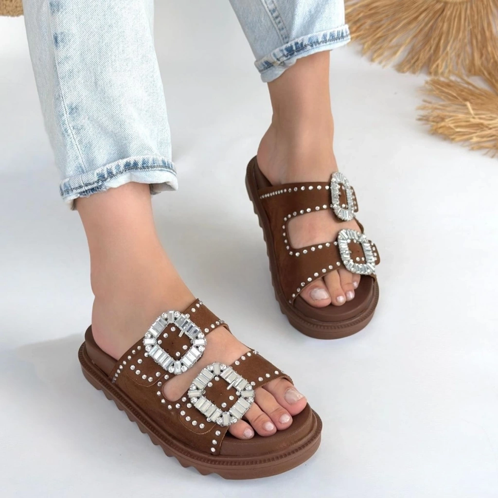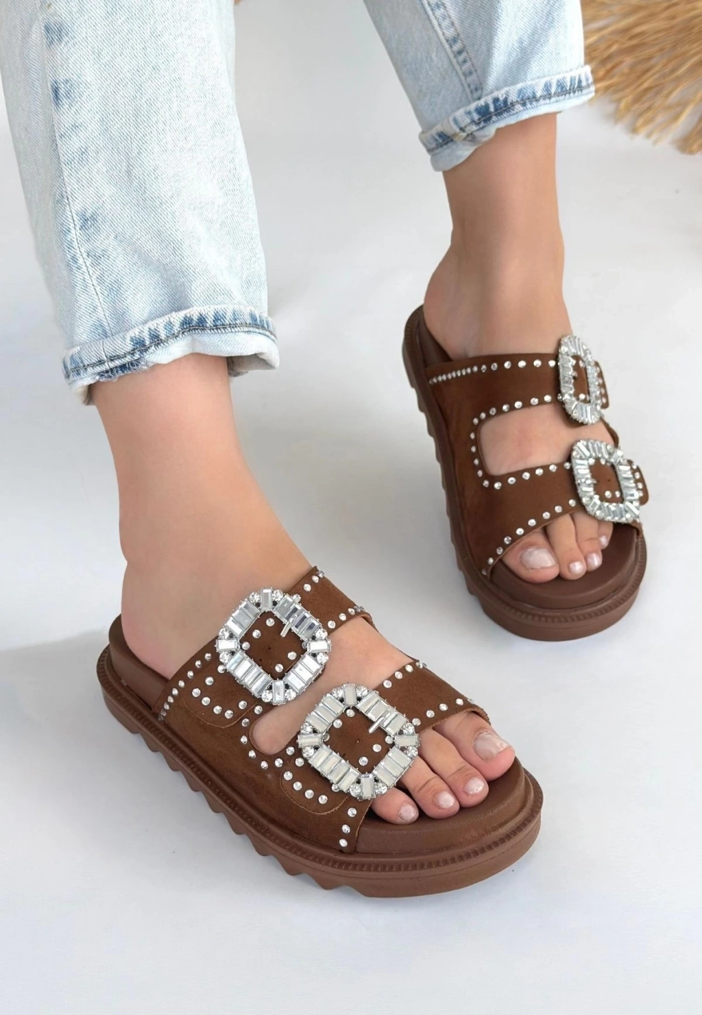 Loera Pemba Nubuk Çift Tokalı Terlik