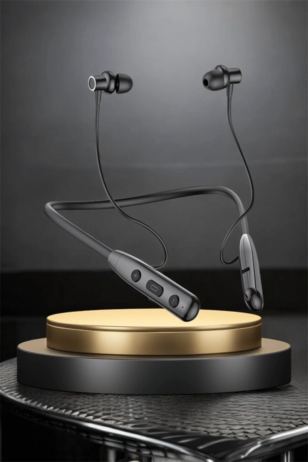 Sports Mıknatıslı Siyah Bluetooth Kulaklık Kablolu Uzun Pil Ömrü
