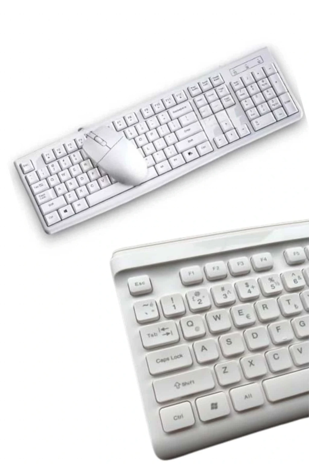 Q Klavye Beyaz Klavye Ve Mouse Seti Kablosuz USB Girişli