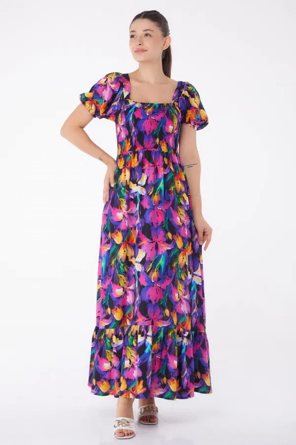 Kadın Fuşya Gipeli Kısa Kollu Elbise