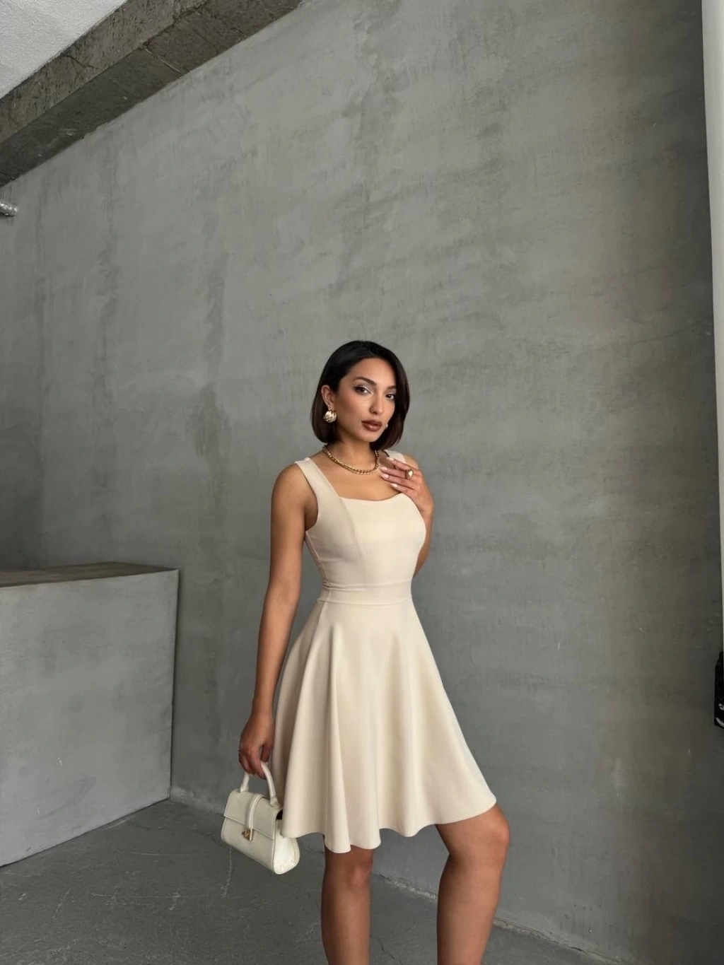 Fermuar detaylı fitilli şardonlu elbise bej a3178