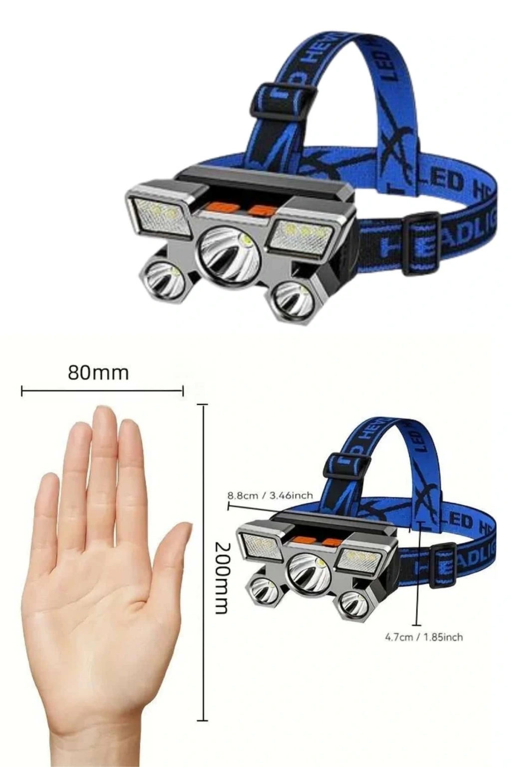 Outdoor ve Gece Balıkçılığı İçin LED Kafa Lambası – USB Şarjlı, 60° Ayarlanabilir Far