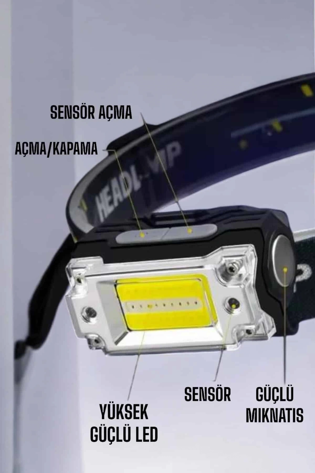 Kafa Lambası Kamp Lambası Sensörlü Şarjlı Ayarlanabilir
