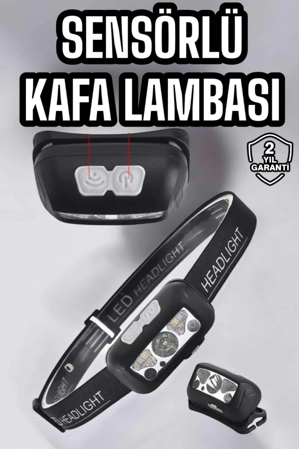 Kafa Lambası Kamp Lambası Sensörlü Şarjlı Ayarlanabilir