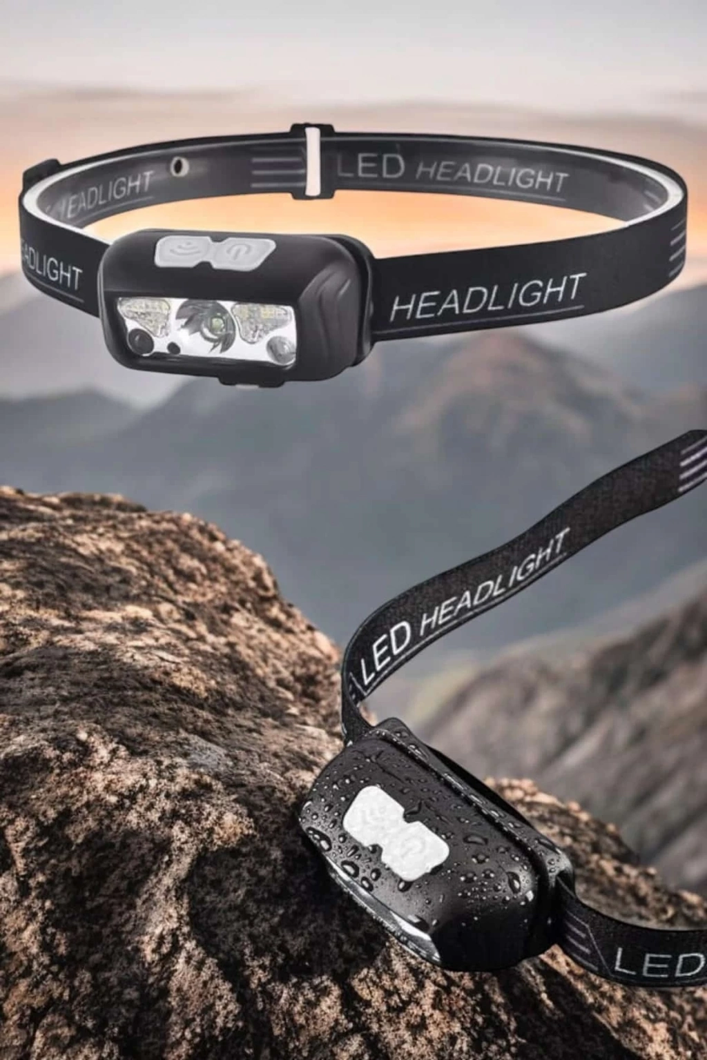 Şarj Edilebilir LED Kafa Feneri – 4 Işık Modu, IPX5 Su Geçirmez, Hareket Sensörlü