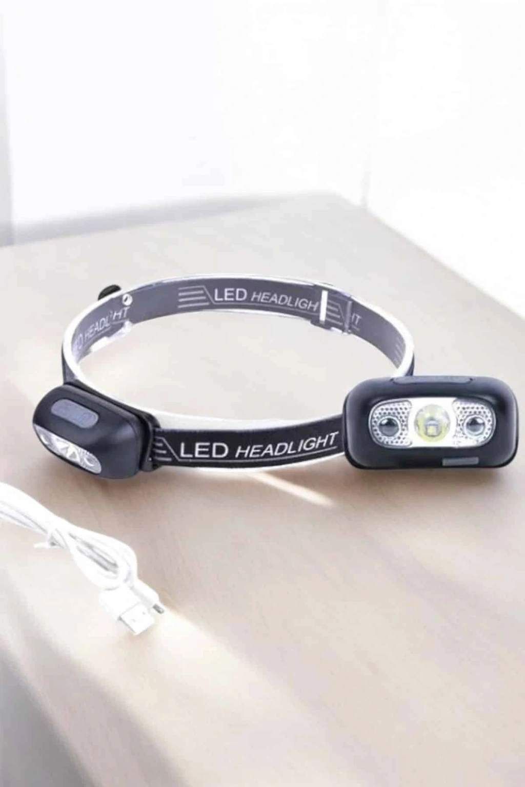 Şarj Edilebilir LED Kafa Feneri – 4 Işık Modu, IPX5 Su Geçirmez, Hareket Sensörlü
