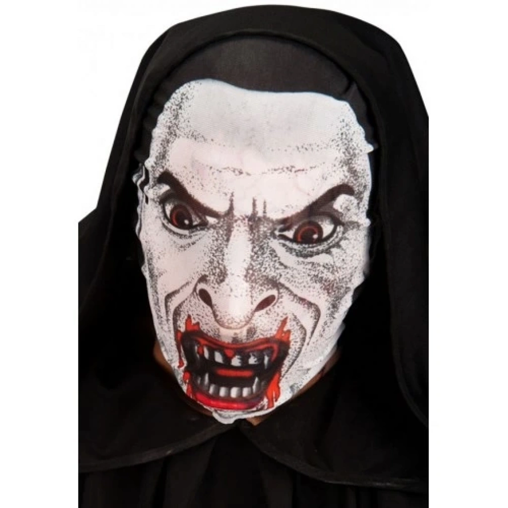 Siyah Kapüşonlu 120 cm Pelerin ve Beyaz Boyanabilir Tam Yüz Maske