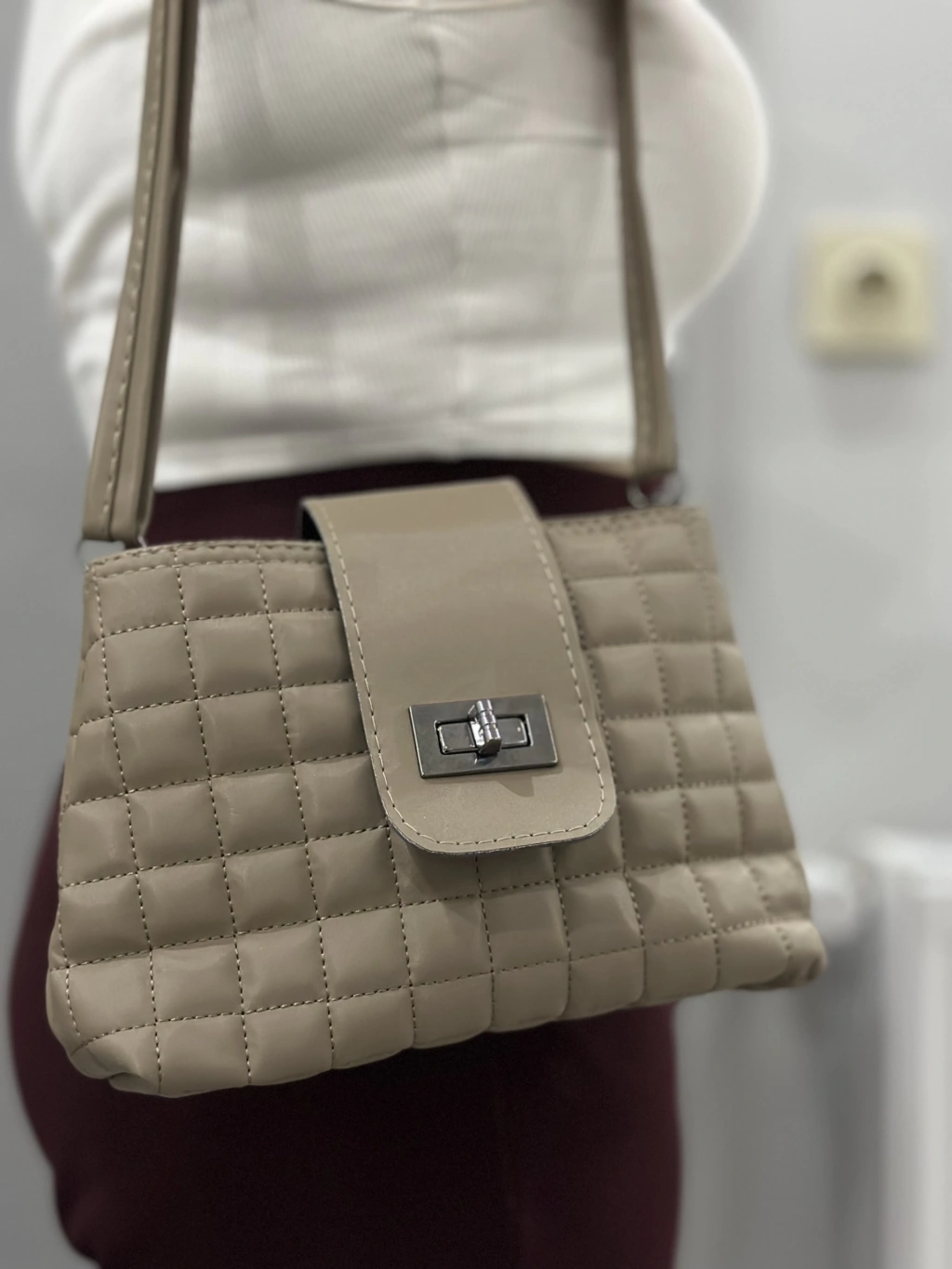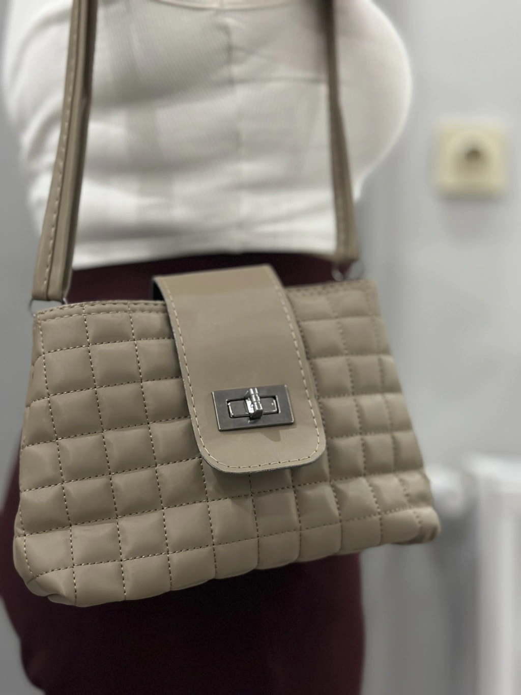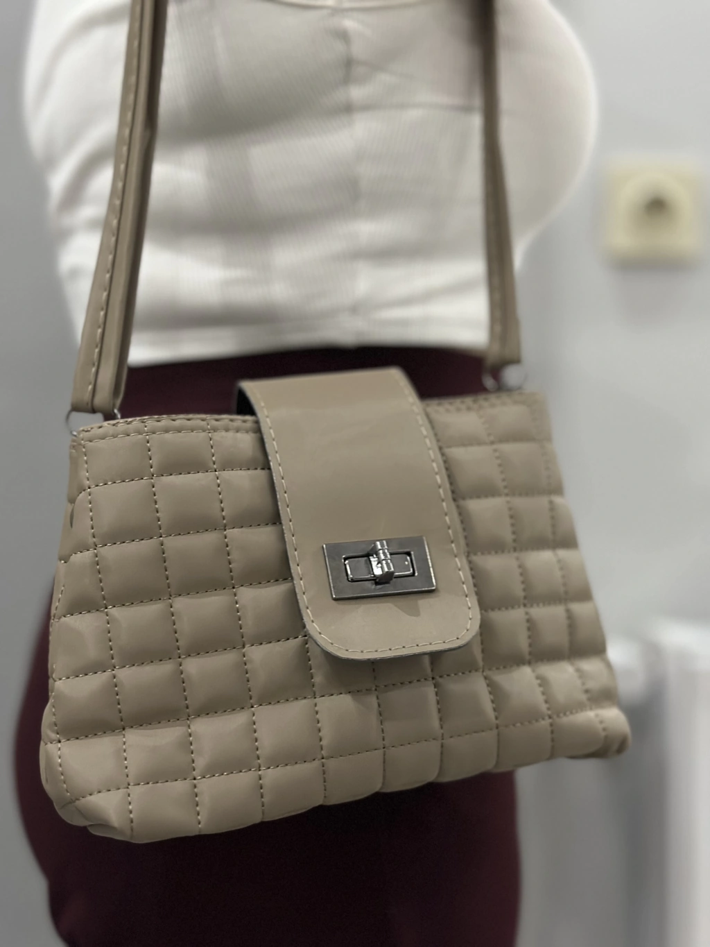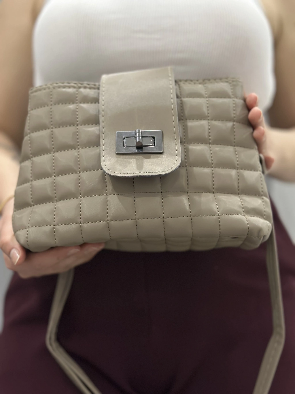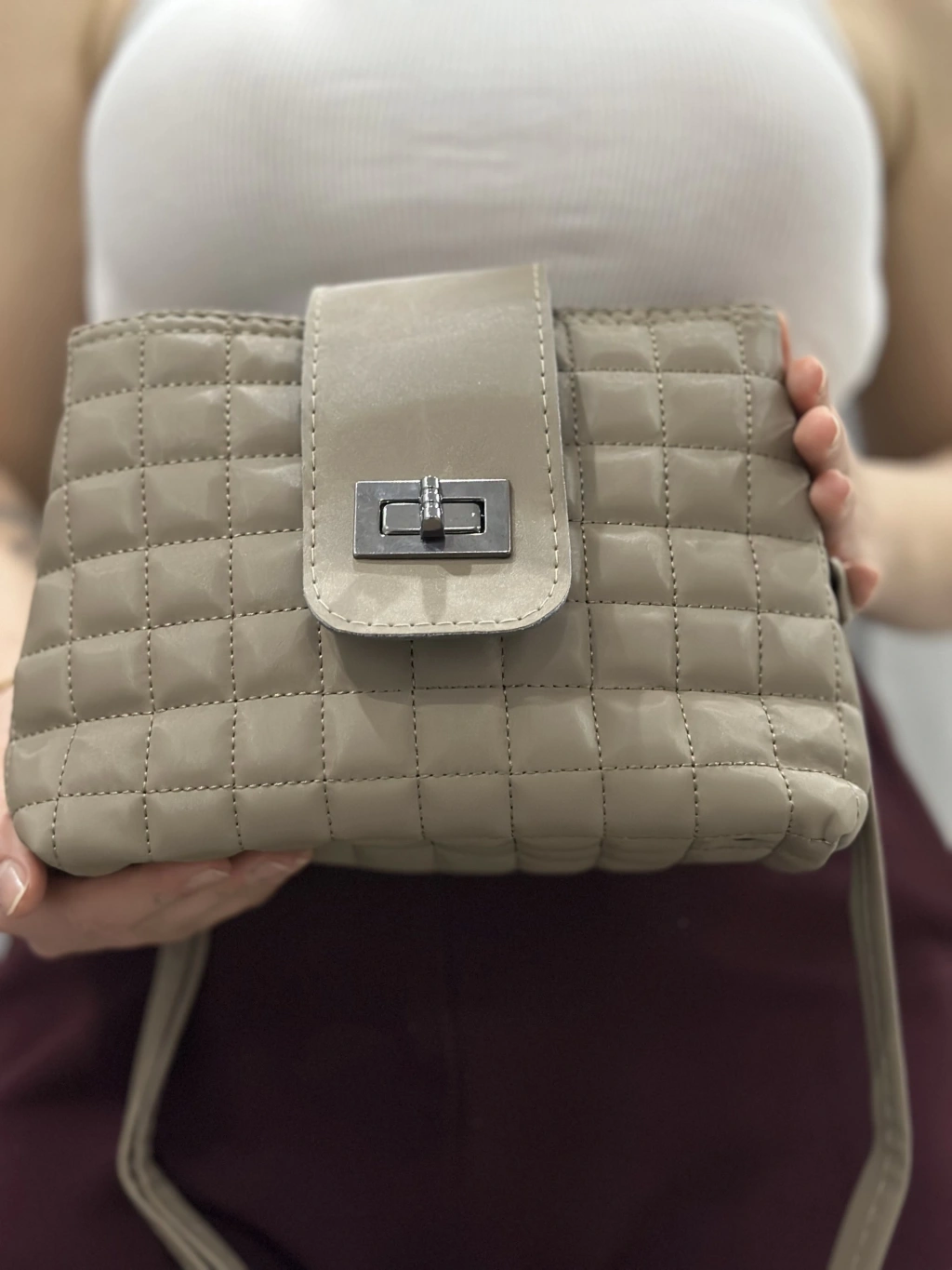 Kapaklı kapitone vizon cilt çanta