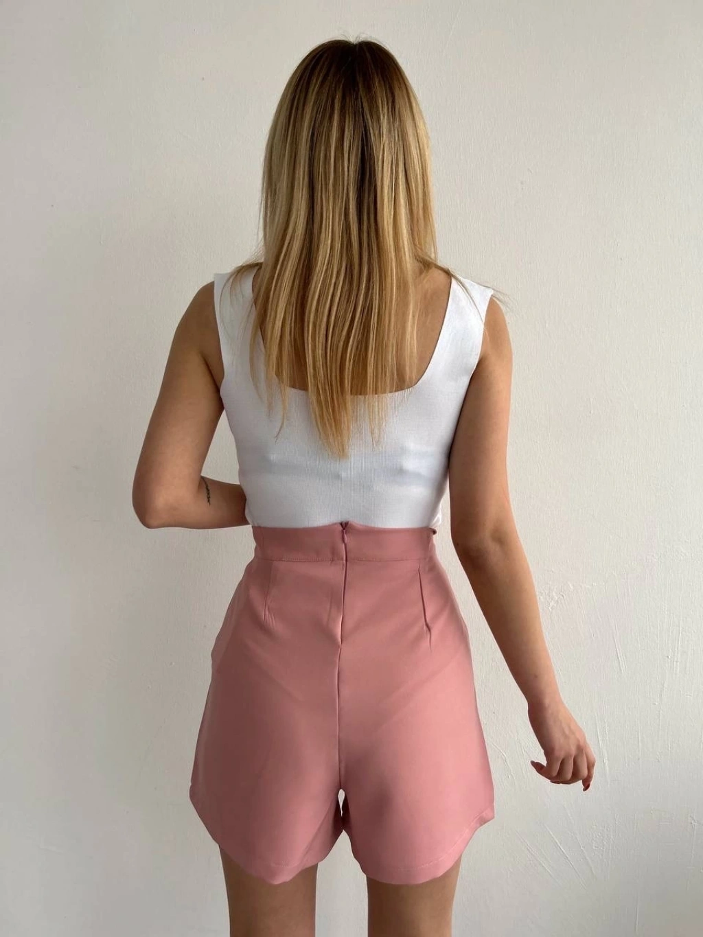 İki düğmeli kaz ayağı desen ch kumaş şort etek bordobeyaz h26414