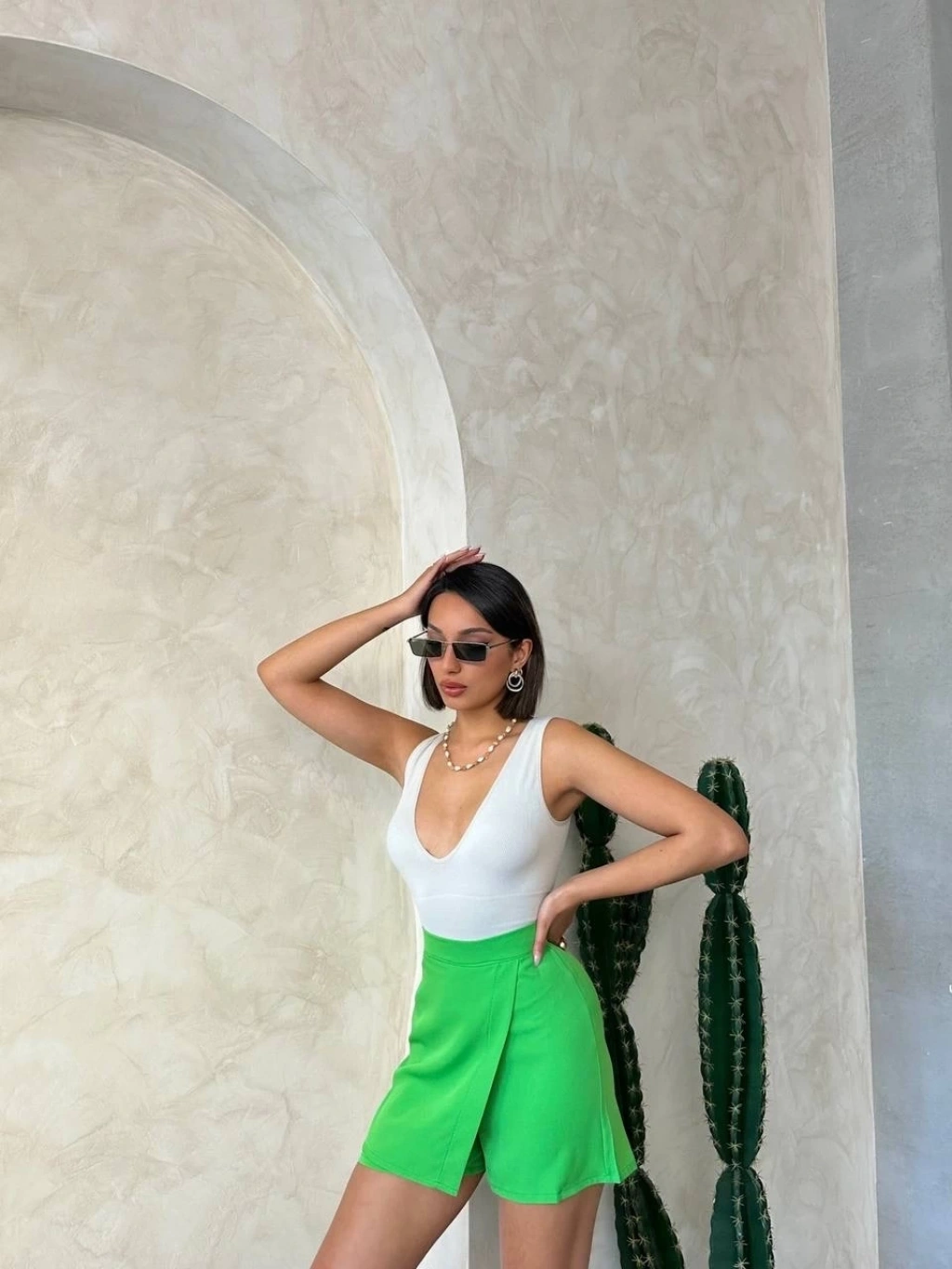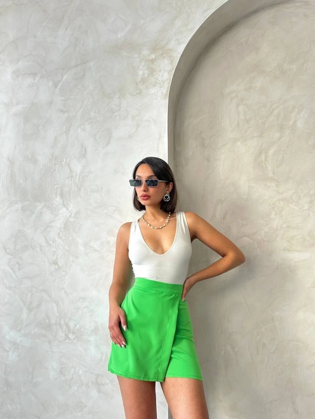 Kapaklı şort etek yeşil s24901
