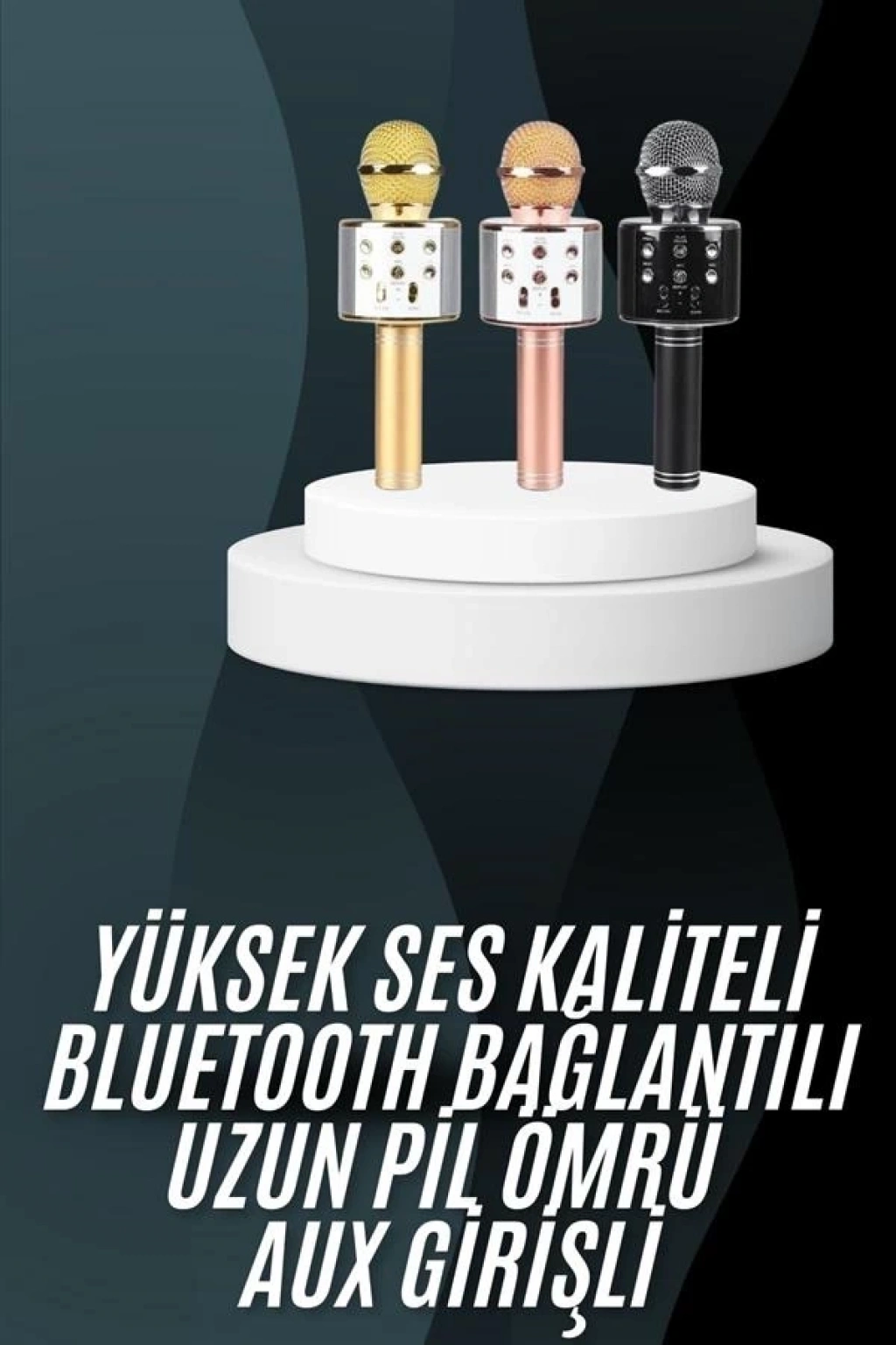 Karaoke Mikrofon Bluetooth Bağlantılı Aux Girişli Uzun Pil Ömrü Yüksek Ses Kaliteli