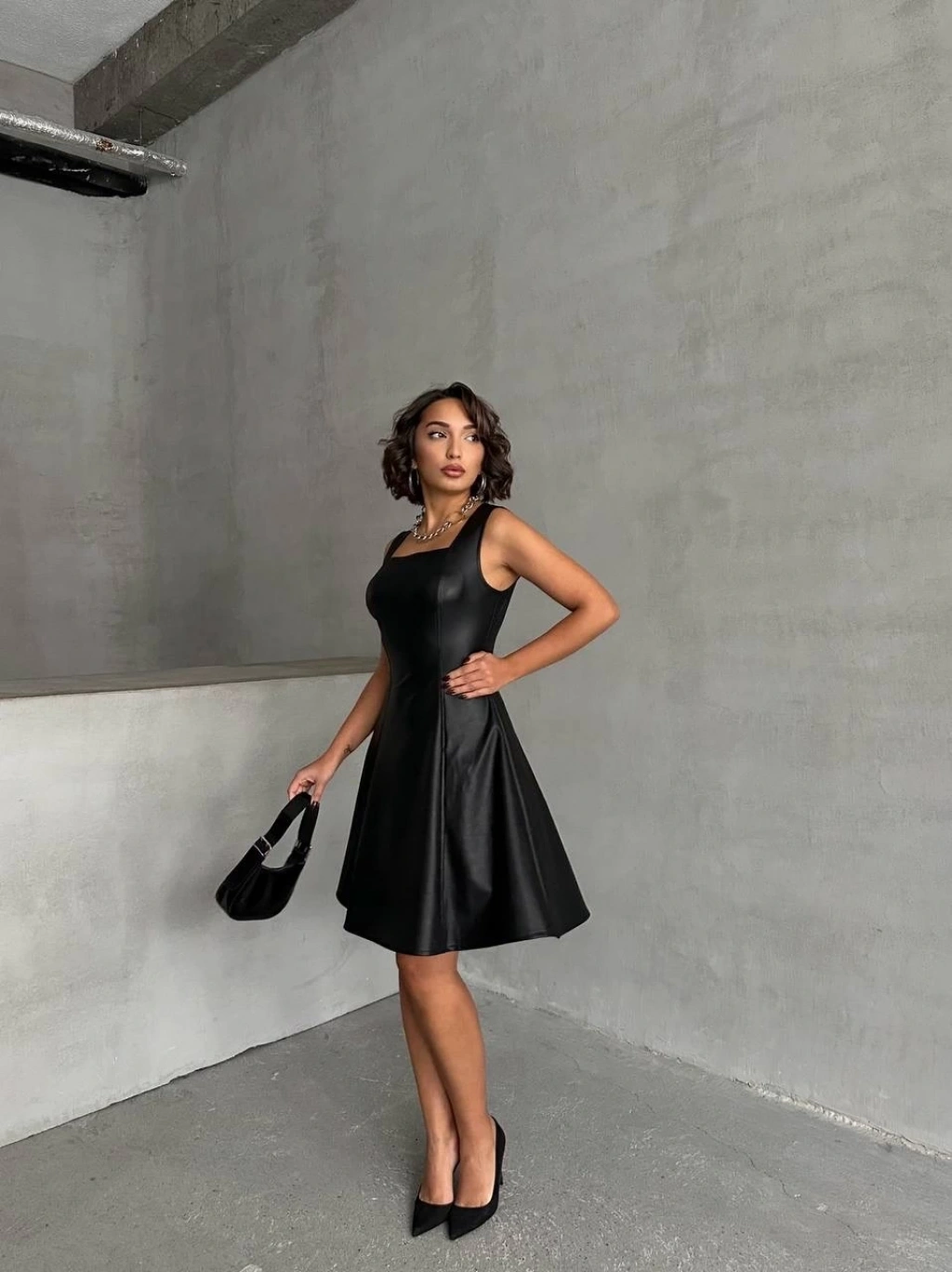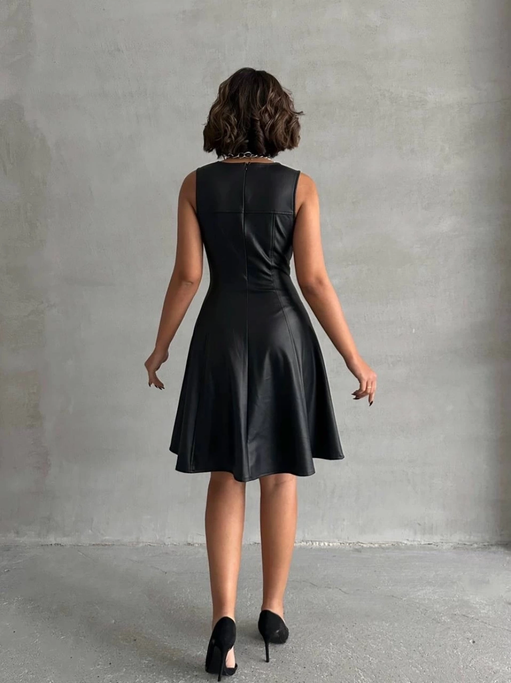 Fermuar detaylı fitilli şardonlu elbise siyah a3178