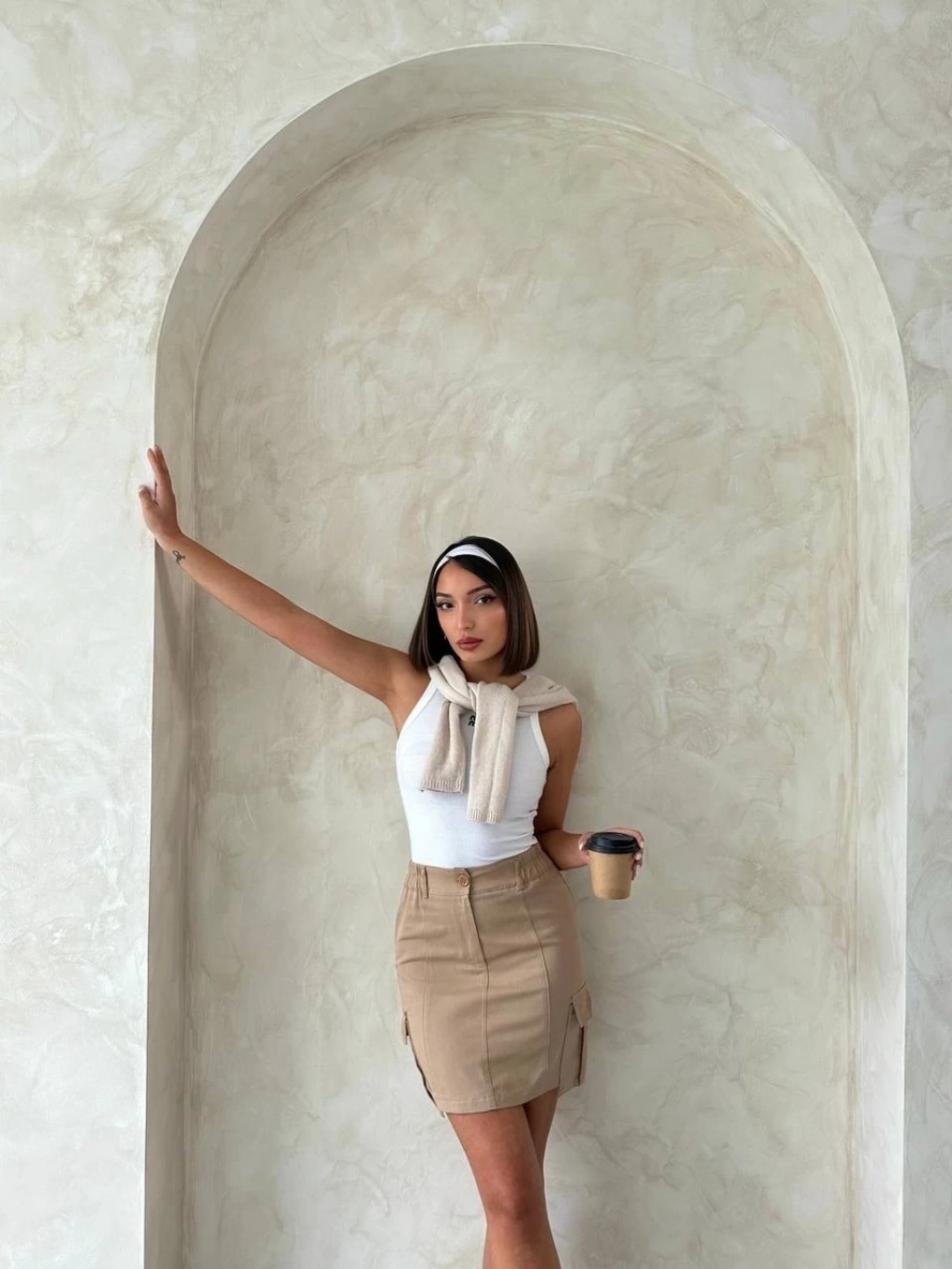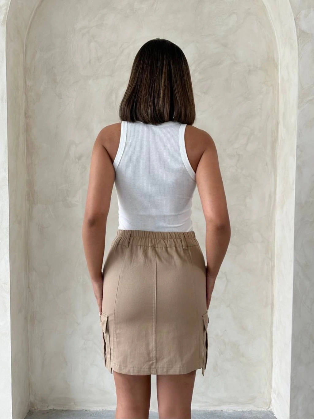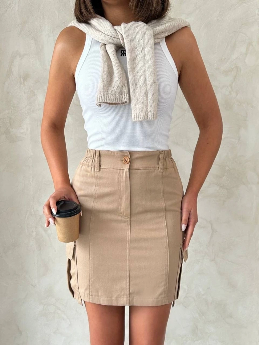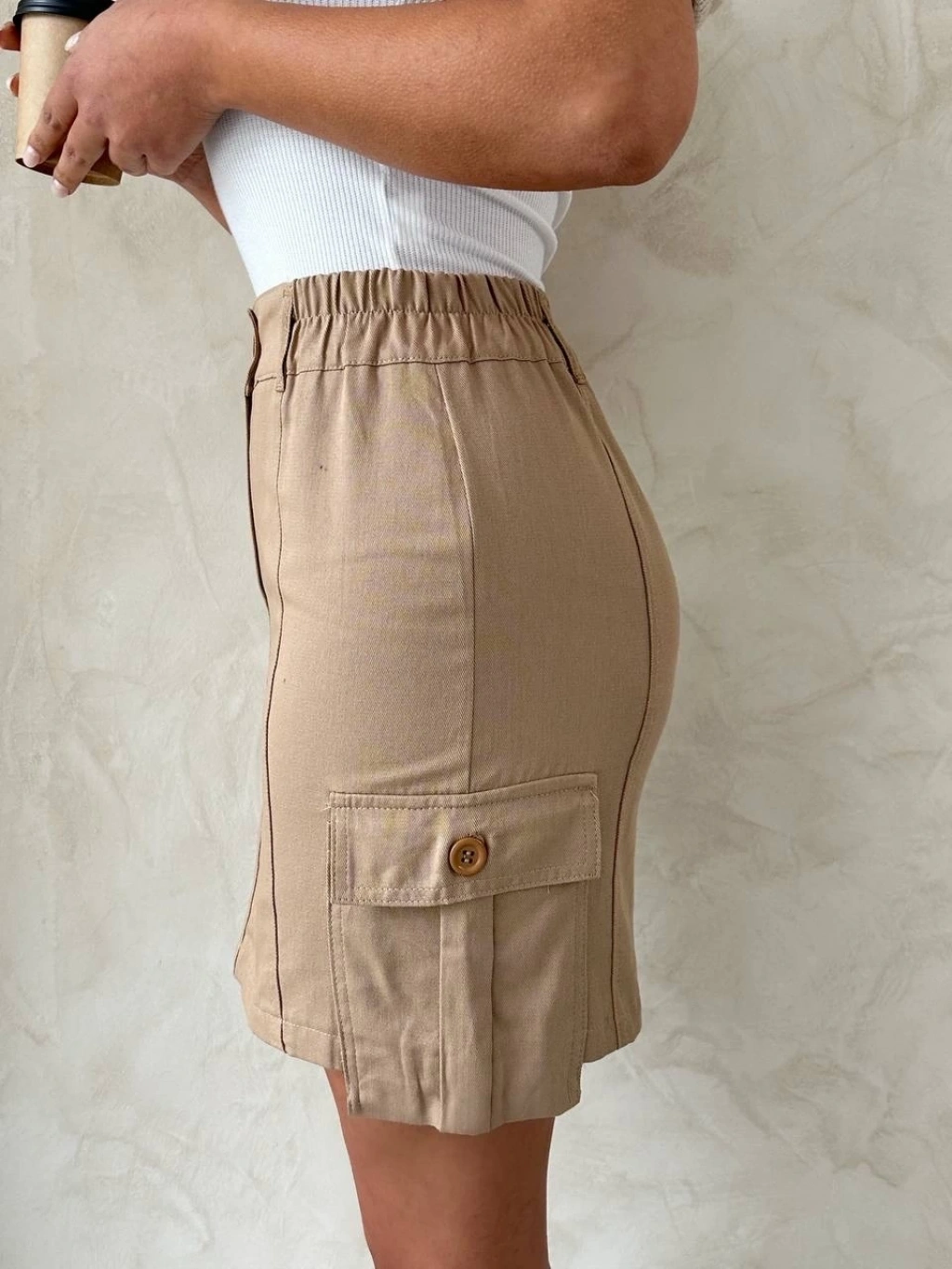 Cep detaylı oval kapaklı deri etek kahve h240048