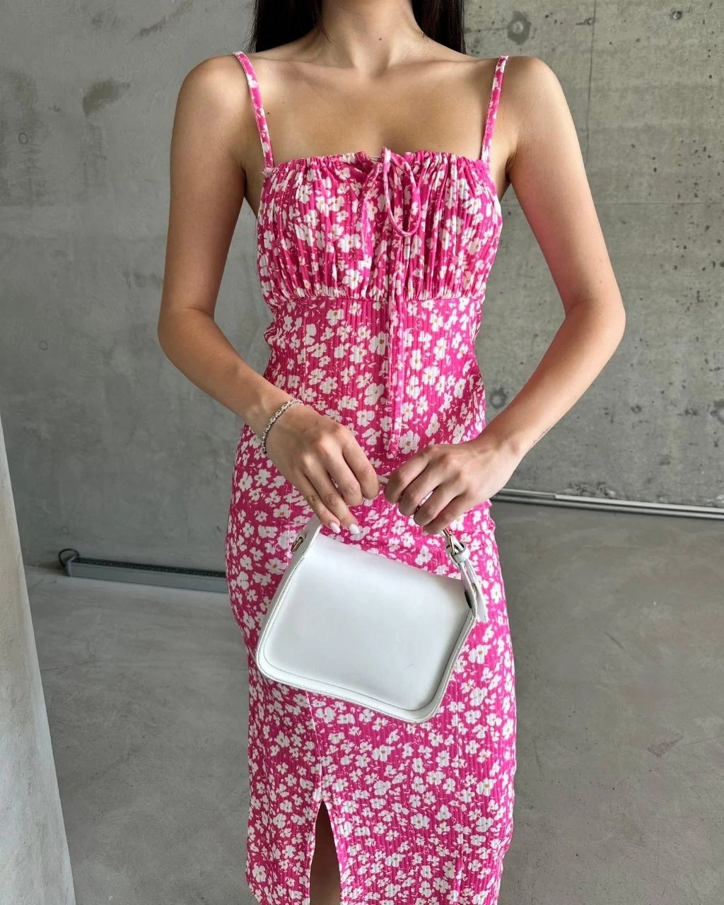 Askılı ch kumaş düğmeli elbise pudrabeyaz h265007