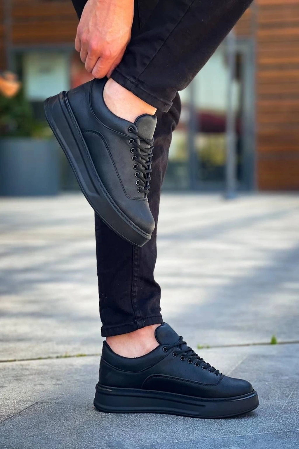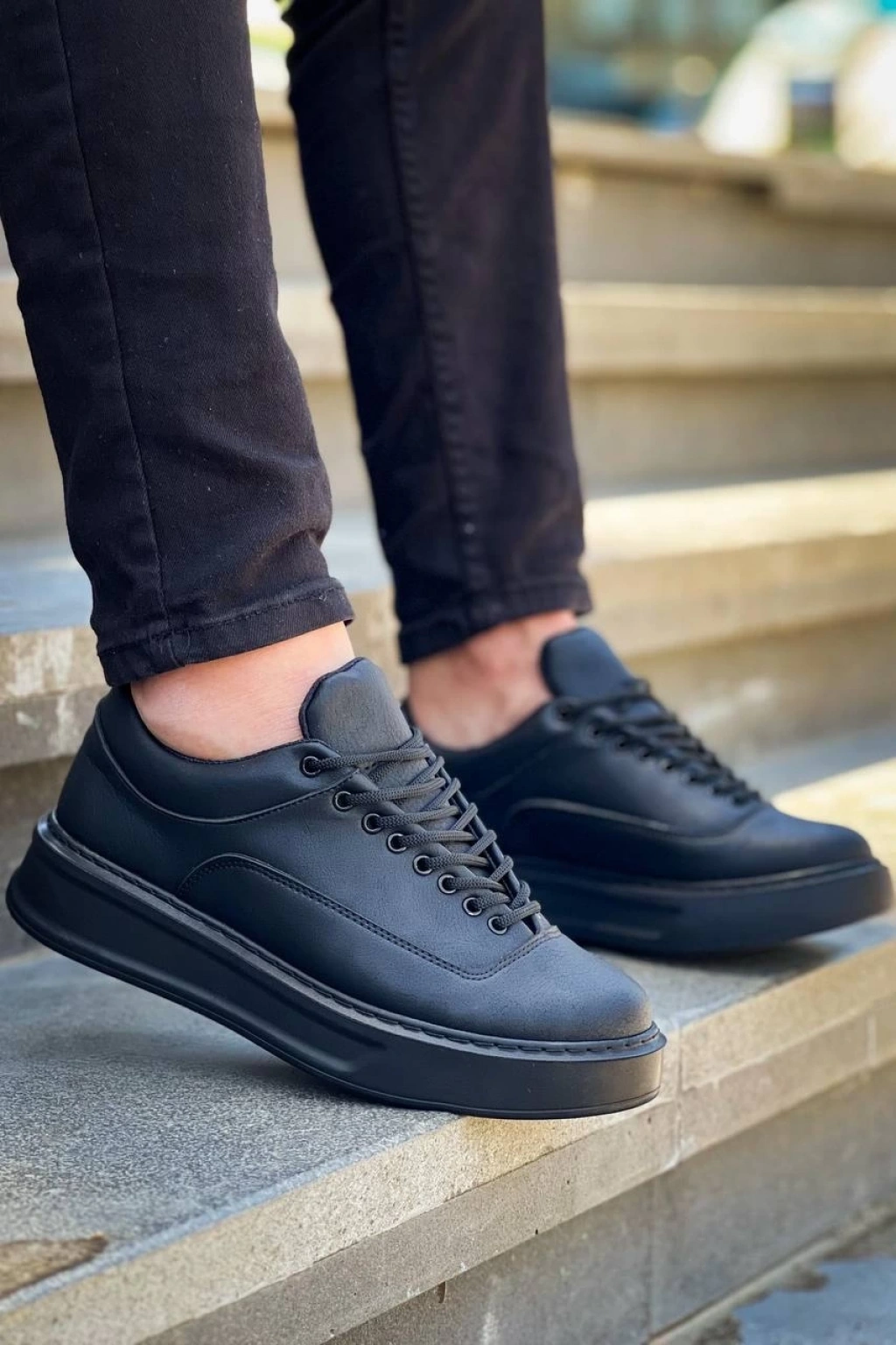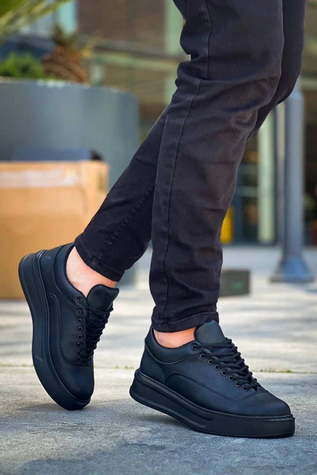 Tawen Siyah Cilt Bağcıklı Spor Ayakkabı
