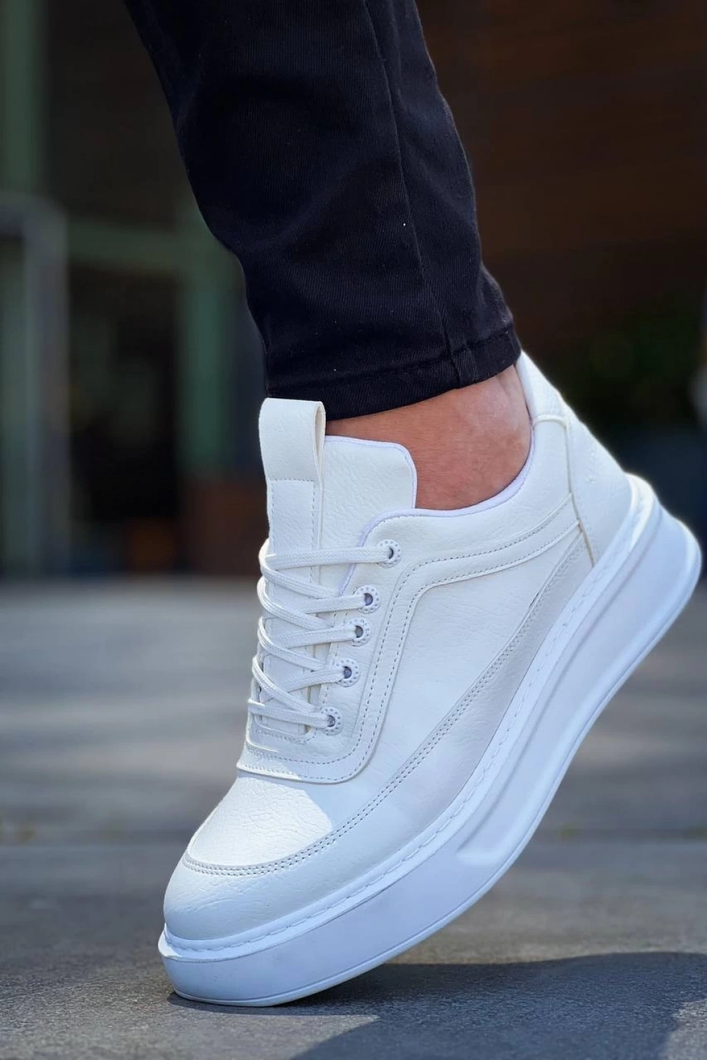 KB-006 Kuback Beyaz Cilt Yüksek Taban Bağcıklı Günlük Erkek Ayakkabı