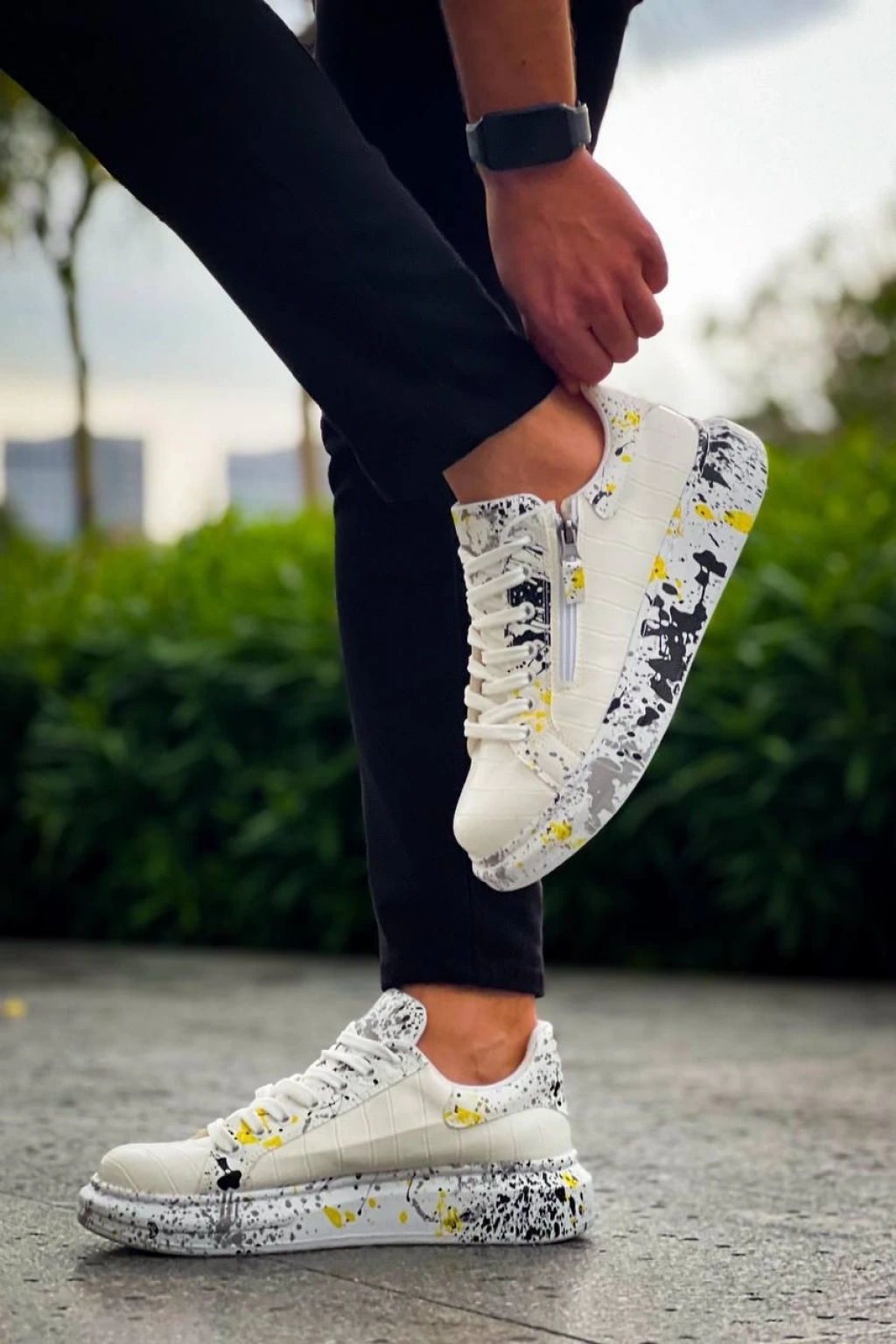 KB-02 Kuback Bağcıklı Crocodile Beyaz Sarı Günlük Erkek Ayakkabı