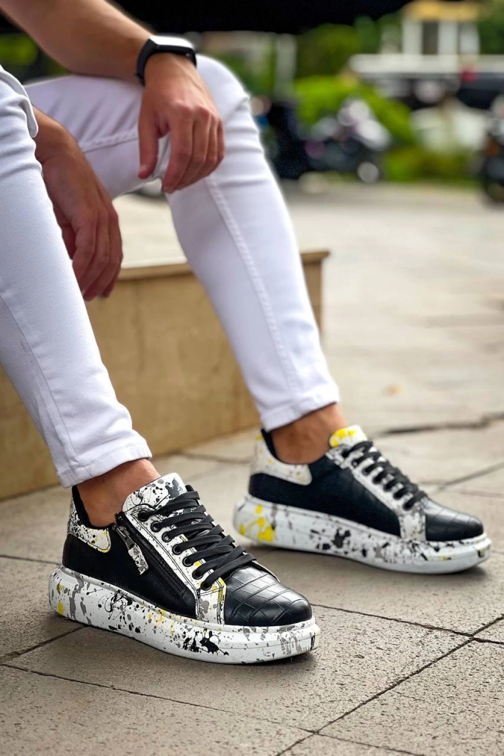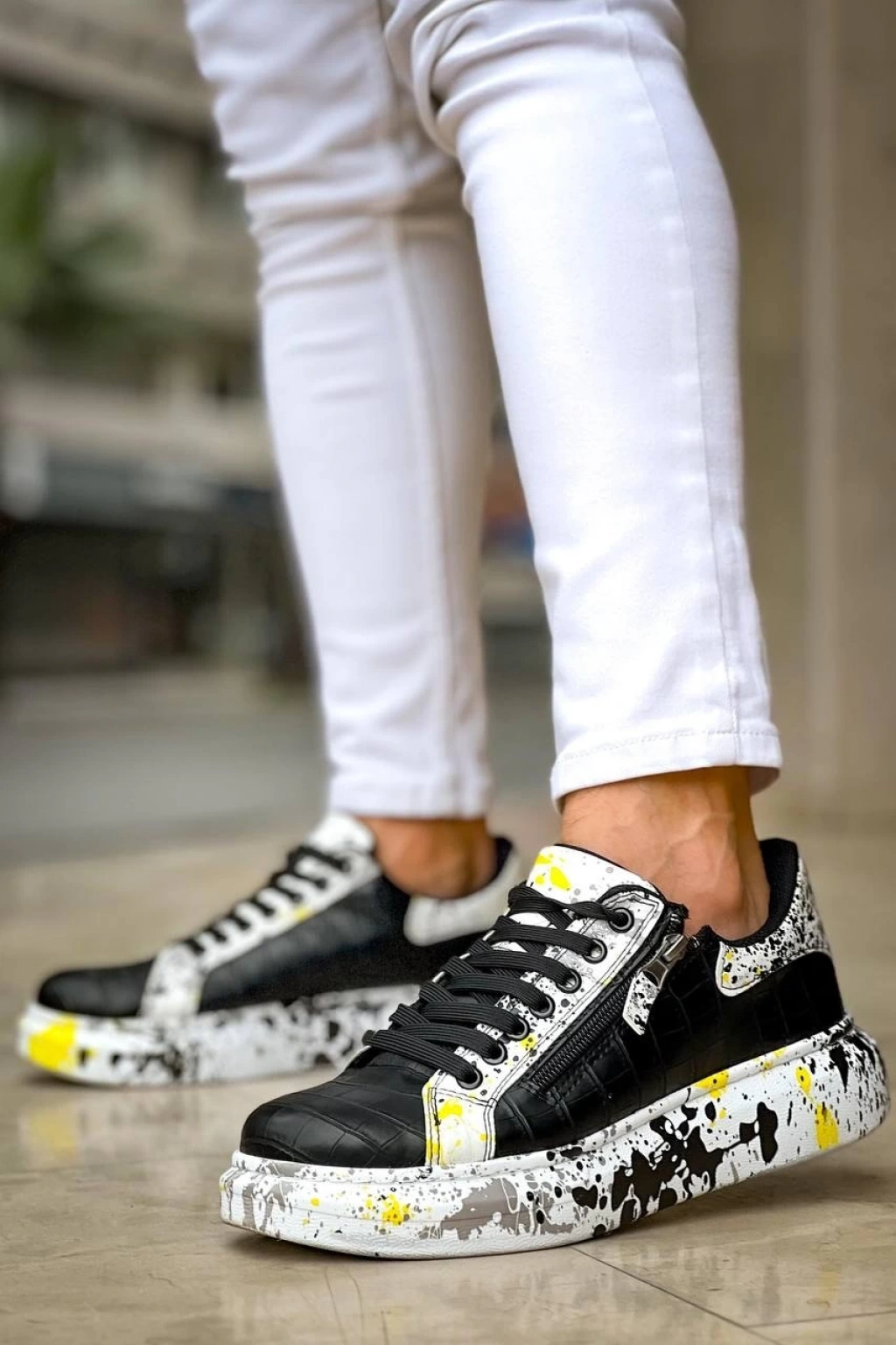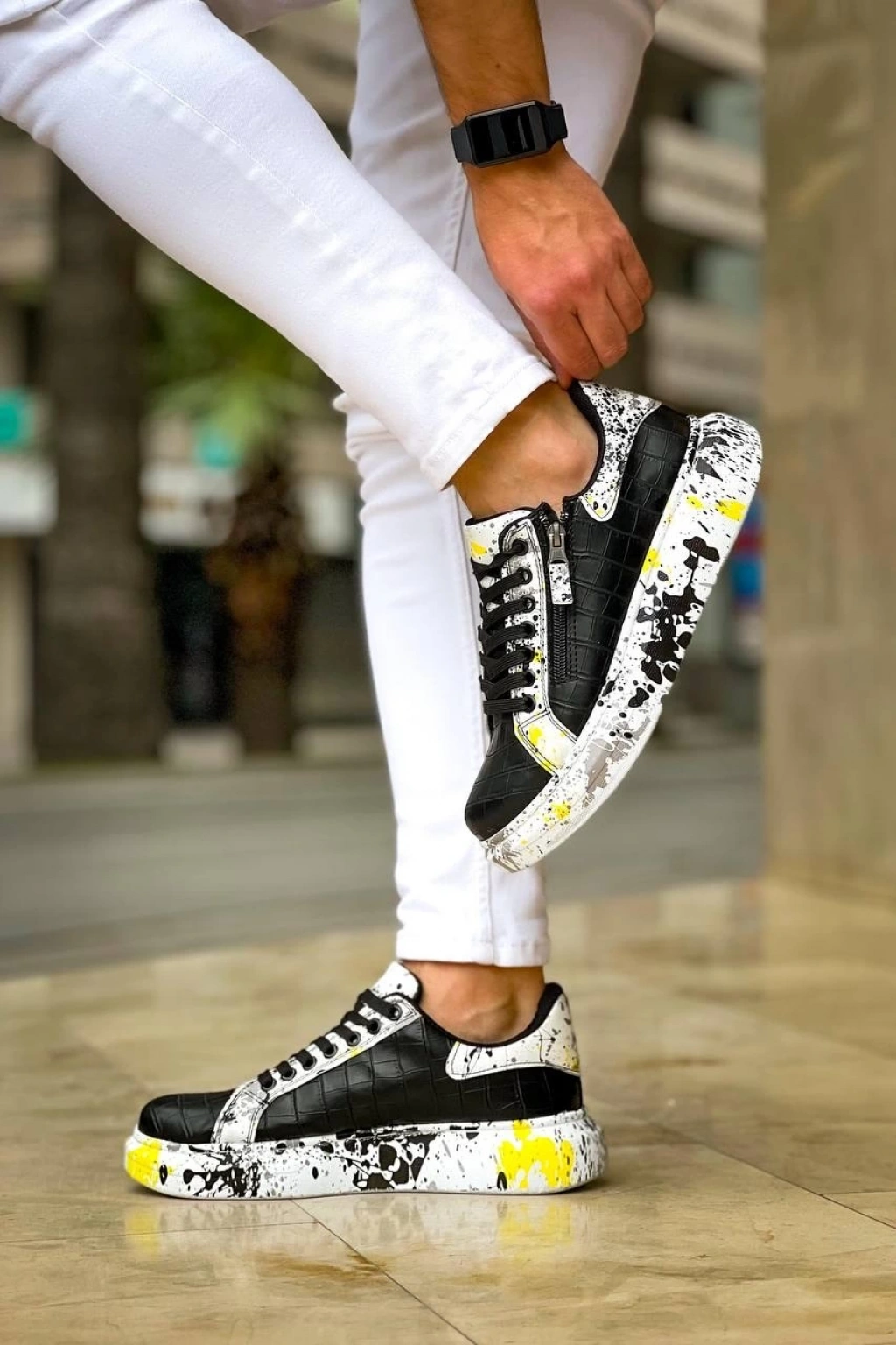 KB-02 Kuback Bağcıklı Crocodile Siyah Sarı Günlük Erkek Ayakkabı