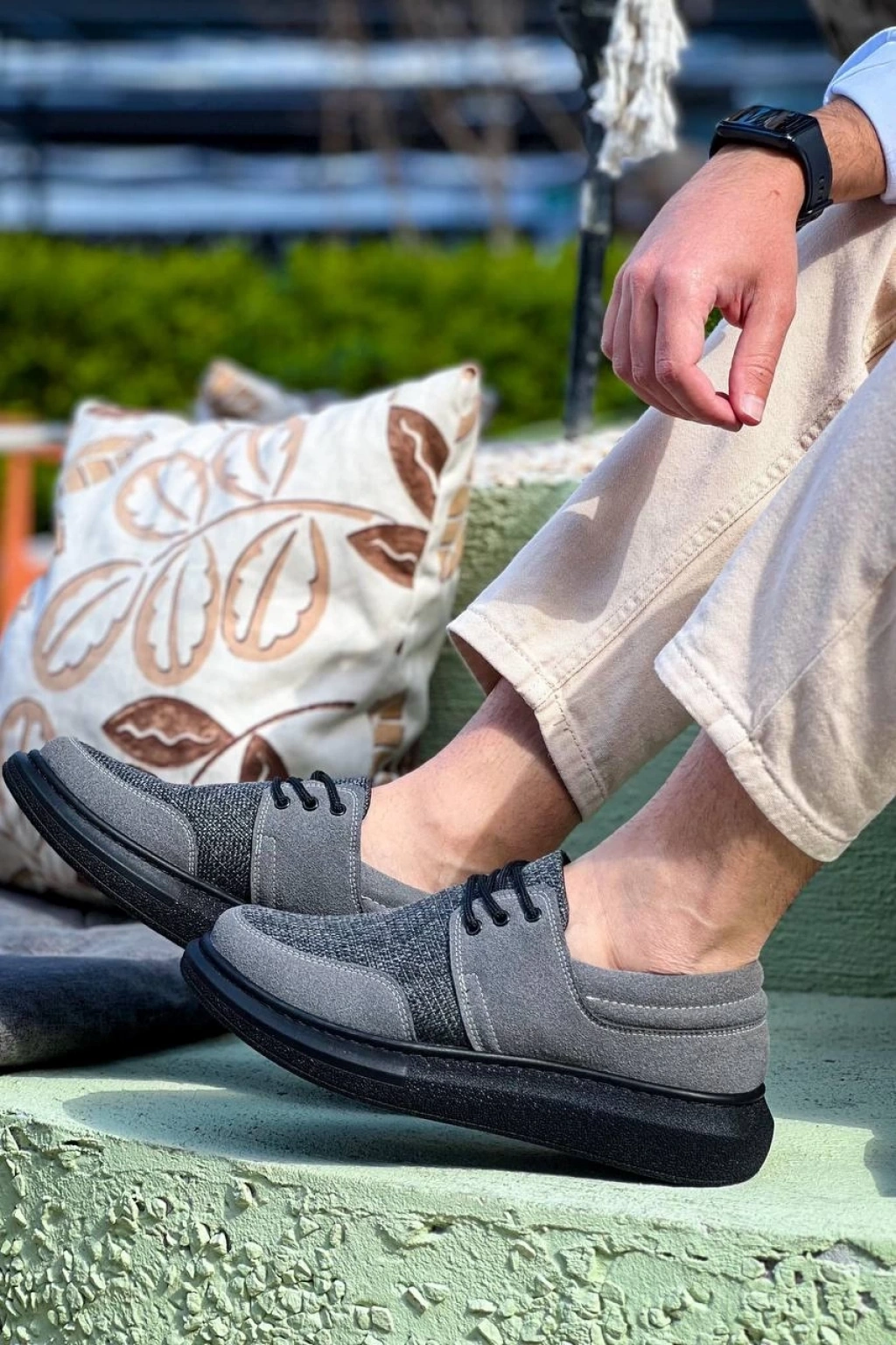 KB-042 Kuback Bağcıklı Gri Siyah Taban Günlük Erkek Ayakkabı
