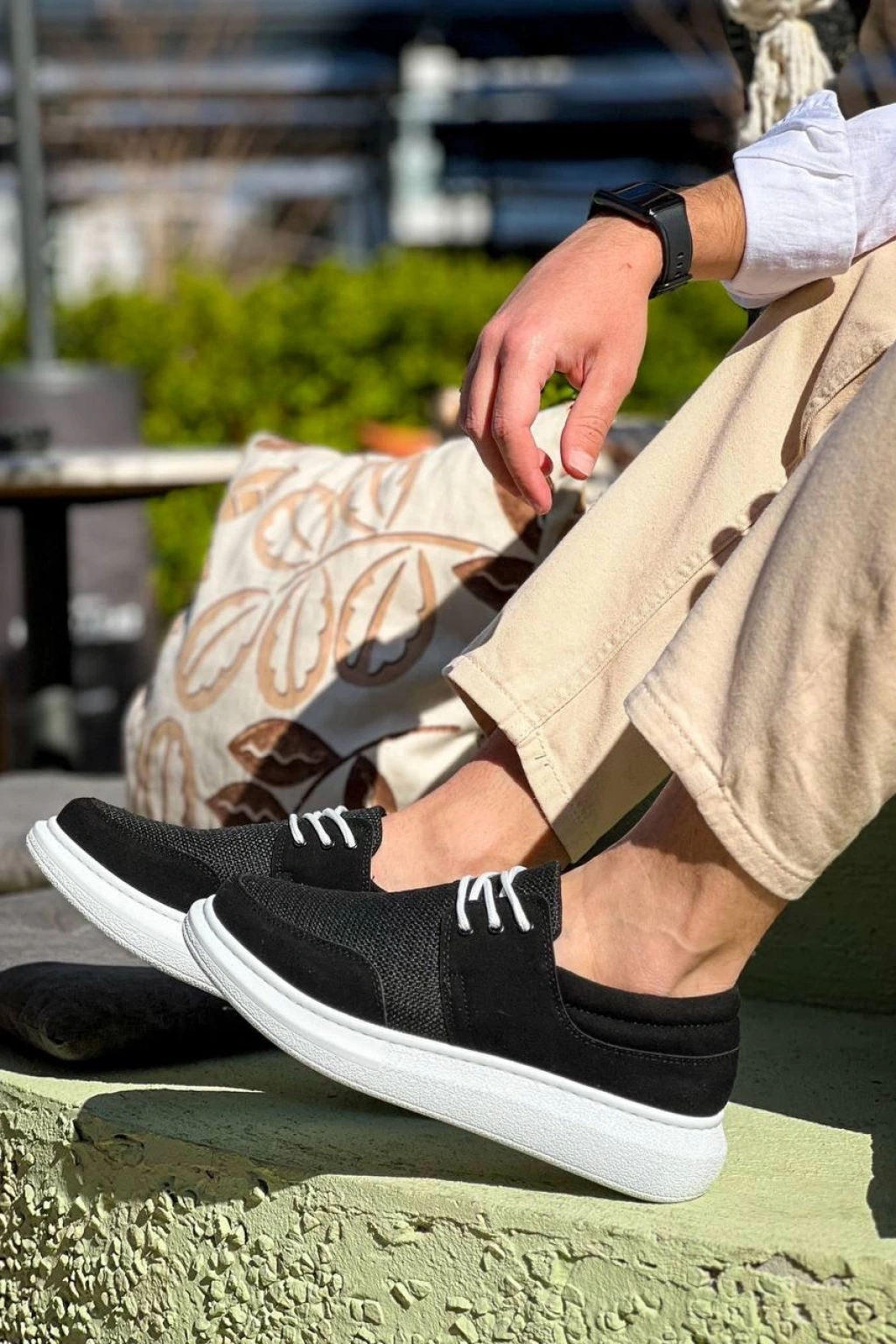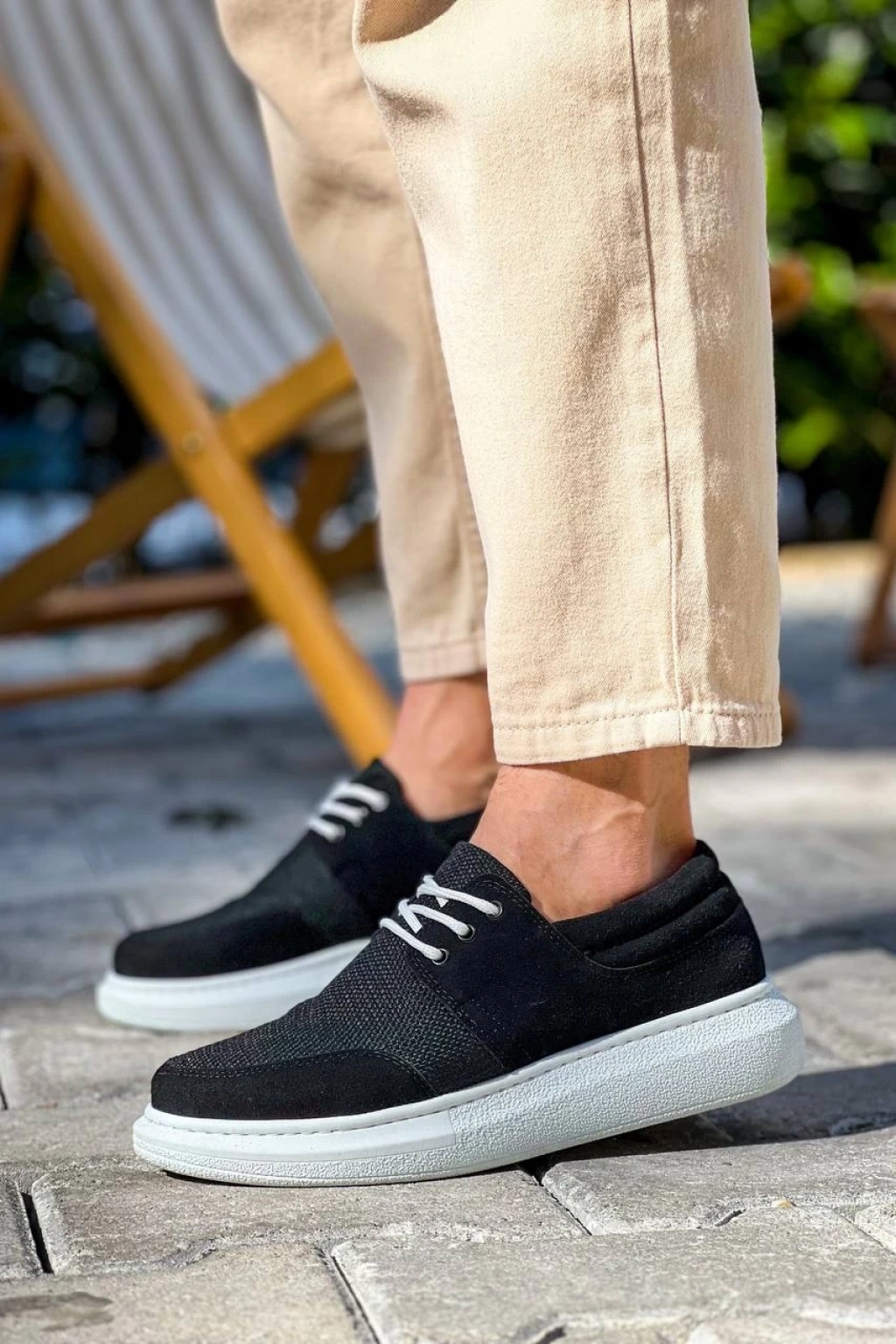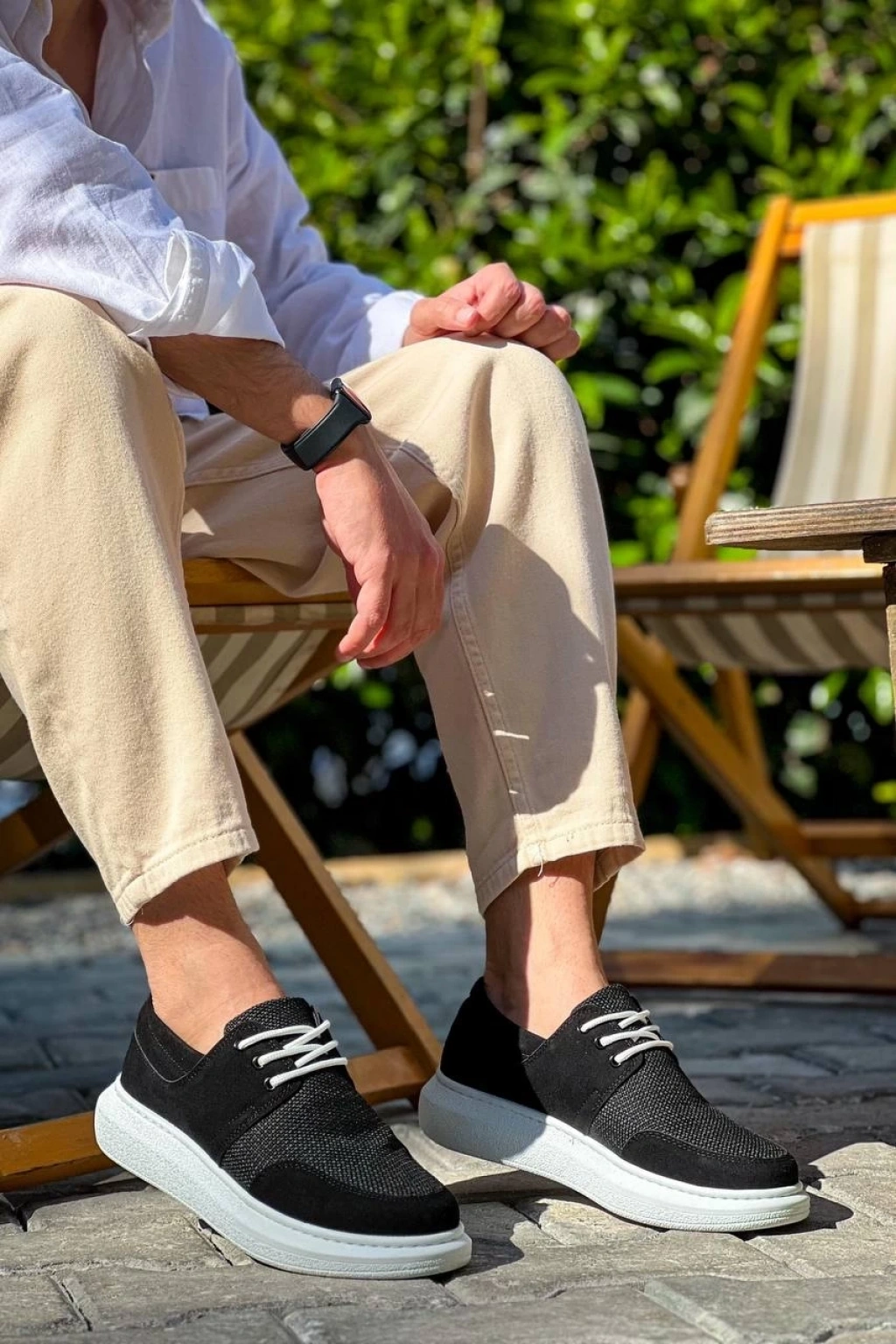 KB-042 Kuback Bağcıklı Siyah Deri Tozu Beyaz Taban Günlük Erkek Ayakkabı