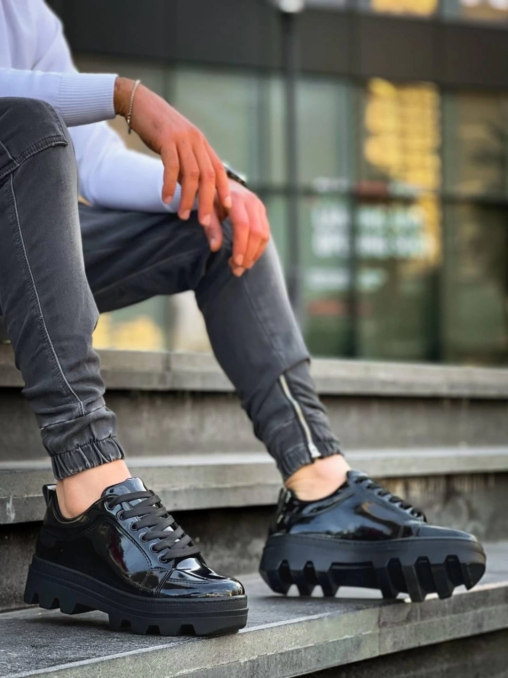 KB-056 Kuback Siyah Rugan Siyah Yüksek Taban Günlük Spor Ayakkabı
