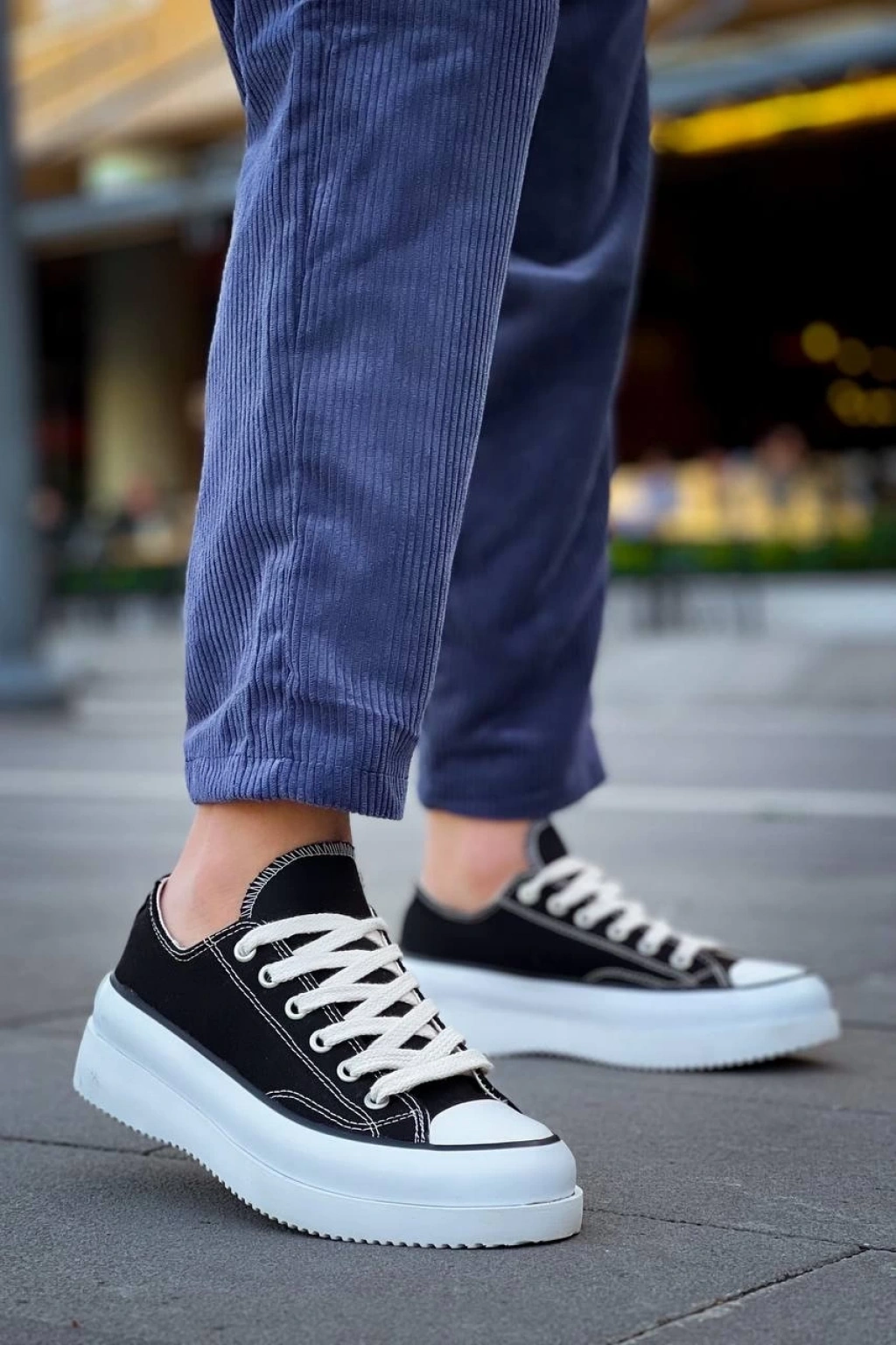 KB-CX-3 Kuback Kısa Siyah Keten Beyaz Yüksek Taban Spor Ayakkabı