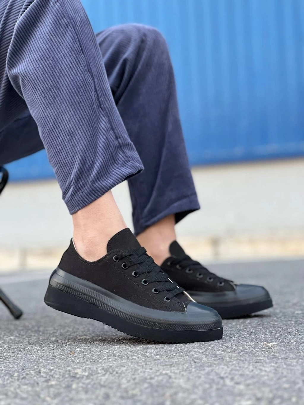 KB-CX-3 Kuback Kısa Siyah Keten Siyah Yüksek Taban Spor Ayakkabı