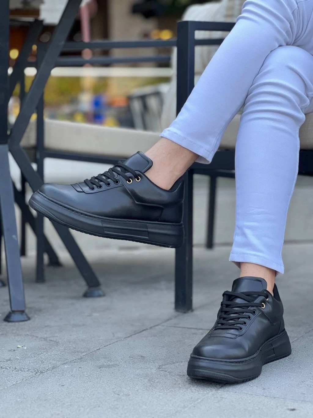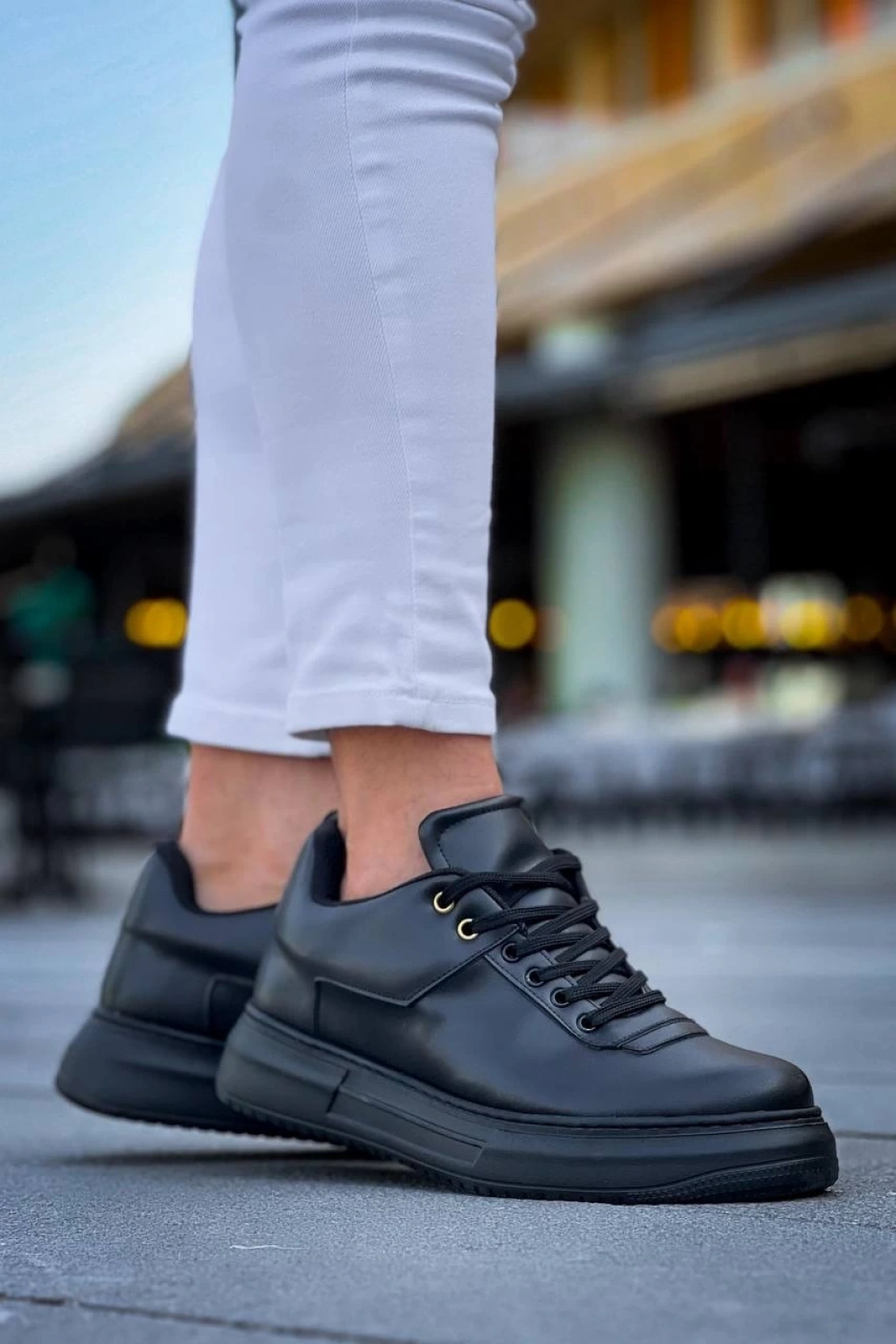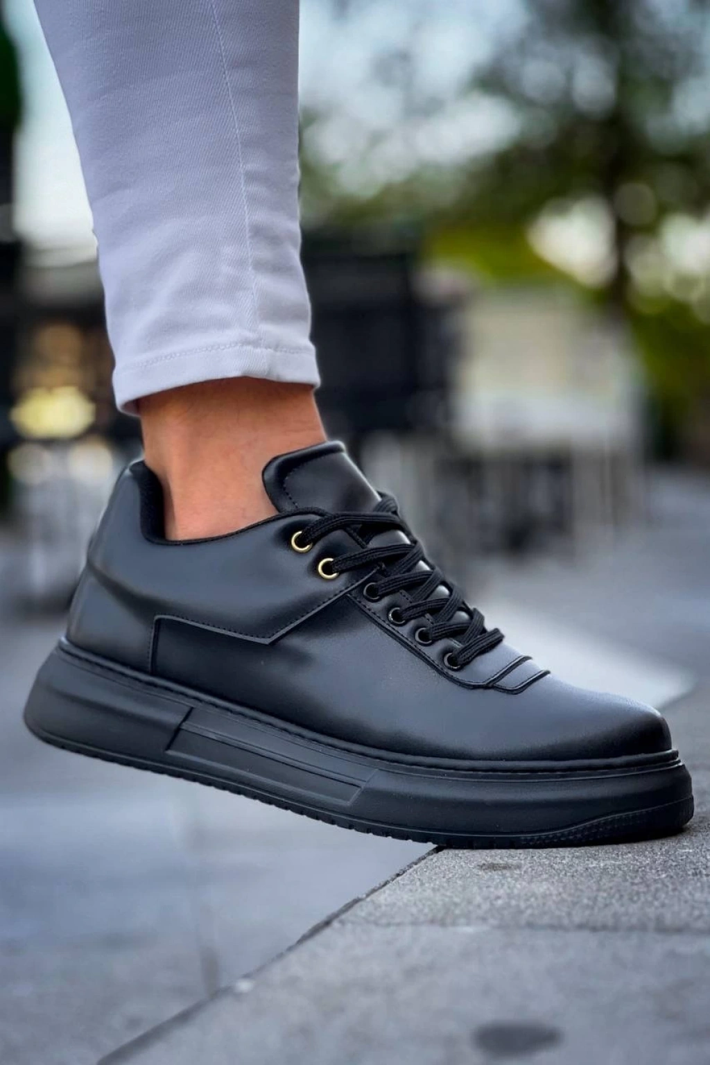 Tawen Siyah Cilt Bağcıklı Spor Ayakkabı