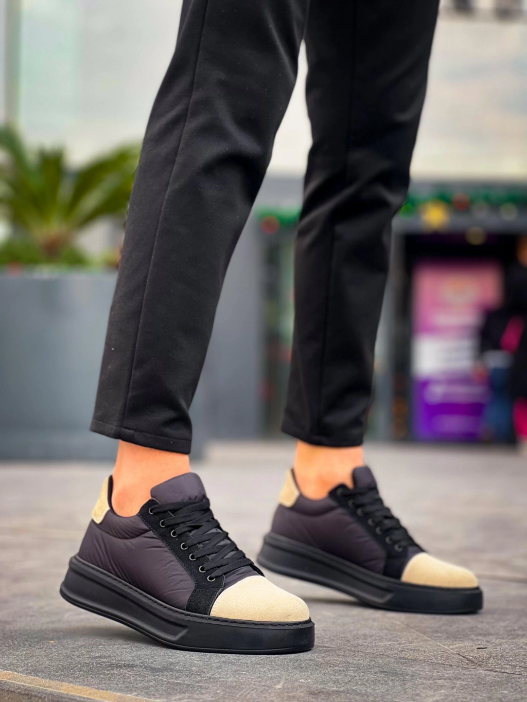 KB-X46 Kuback Siyah Bej Yüksek Siyah Taban Günlük Spor Ayakkabı