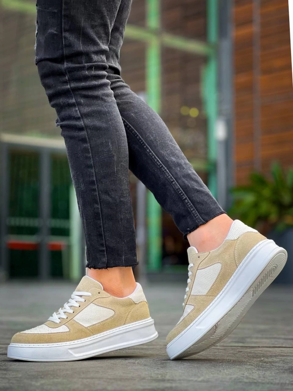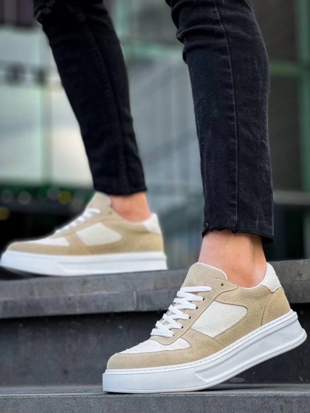 KB-X8 Kuback Bej Keten Süet Yüksek Taban Günlük Spor Ayakkabı